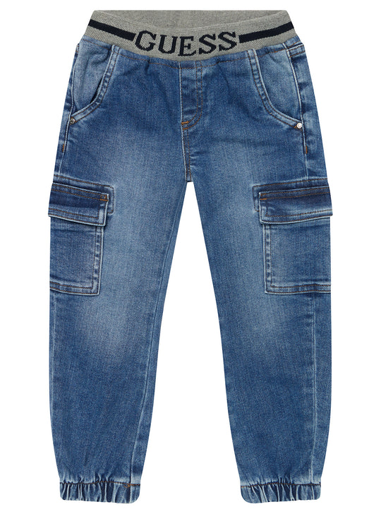 Get your little one ready to conquer the day in these easy-to-wear Blue Denim Pull On Pants! With a drawstring waist, patch pockets, and a logo waistband, these pants are both comfortable and stylish. Perfect for playtime or lounging, these pants are a must-have for any young trendsetter.