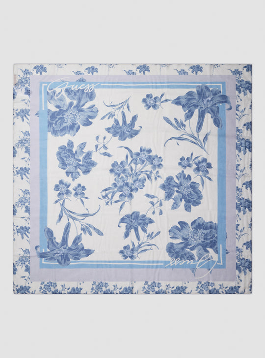 GUESS Womens Blue Floral Bianca Scarf W5GZ14WFF70 Front View GUESS Womens Blue Floral Bianca Scarf W5GZ14WFF70 Detail View