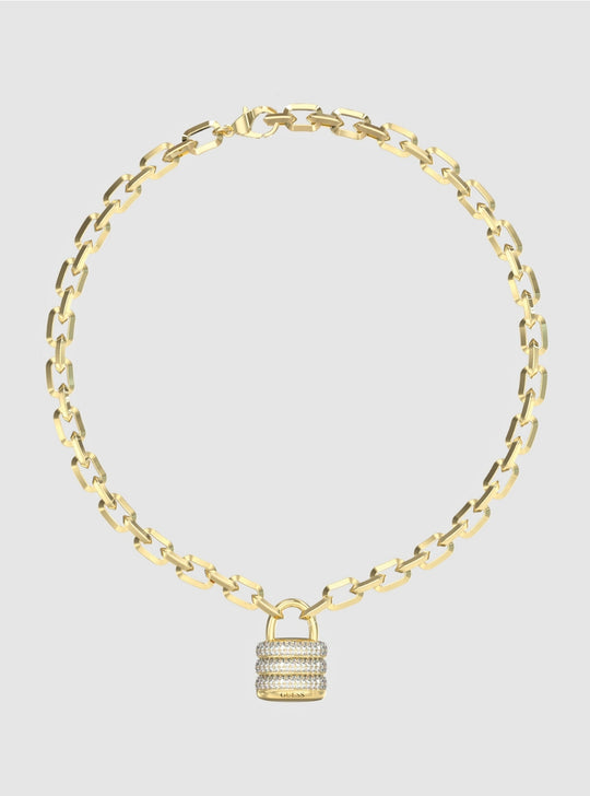 GUESS Accessories Gold Pavé Padlock Necklace JUBN05415JW Front View GUESS Accessories Gold Pavé Padlock Necklace JUBN05415JW Detail View