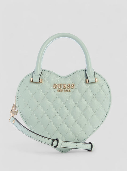 GUESS Womens Green Atabey Mini Heart Bag QG989477 Front View GUESS Womens Green Atabey Mini Heart Bag QG989477 Front Side View GUESS Womens Green Atabey Mini Heart Bag QG989477 Inside View GUESS Womens Green Atabey Mini Heart Bag QG989477 Back View