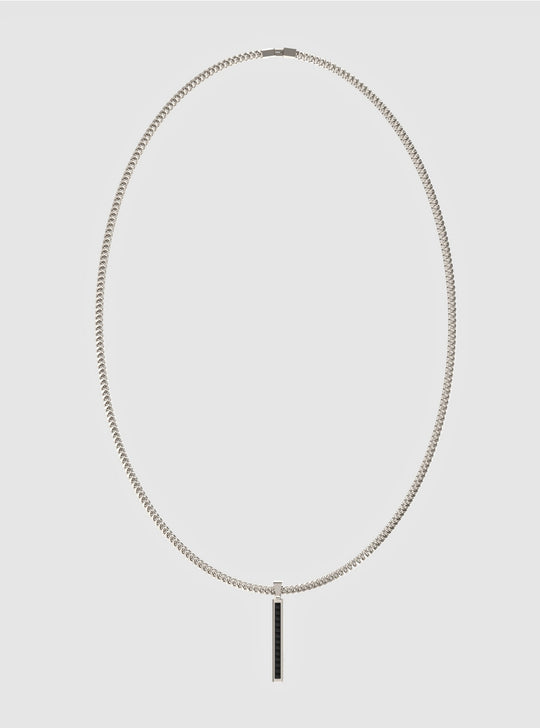 Refined and modern, the Silver Black Crystal Plate Necklace is the perfect finishing touch for contemporary style. Crafted in polished stainless steel, this 26" necklace features a sleek vertical plate inlaid with black crystals for a bold yet understated look. A versatile accessory that works effortlessly with both casual and smart outfits.