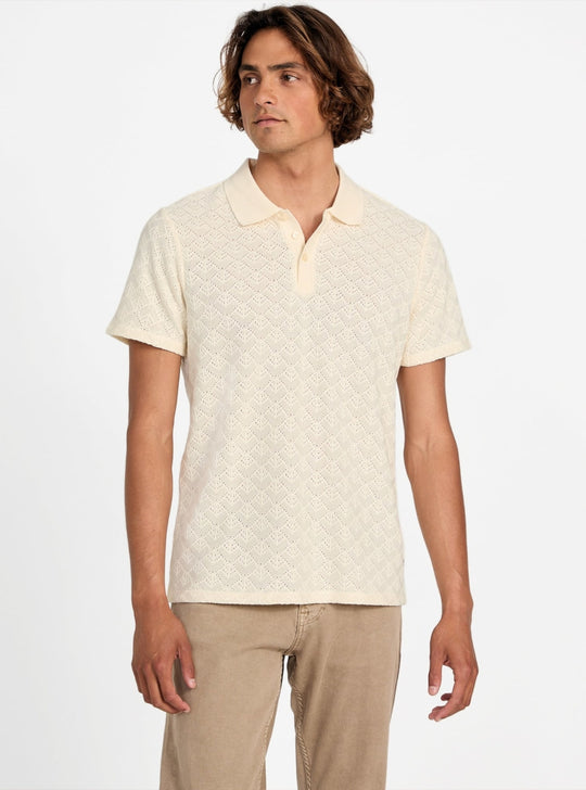 GUESS Mens White Logan Knitted Polo Shirt M5YP14KCWT0 Front View GUESS Mens White Logan Knitted Polo Shirt M5YP14KCWT0 Full View GUESS Mens White Logan Knitted Polo Shirt M5YP14KCWT0 Detail View GUESS Mens White Logan Knitted Polo Shirt M5YP14KCWT0 Back View