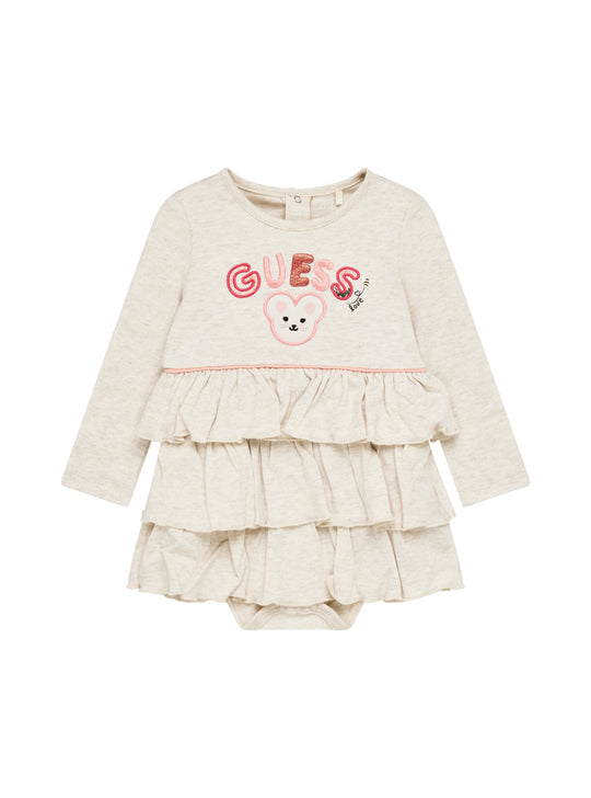 GUESS Kids Eco Beige Interlock Dress Bodysuit (0-12m) S5YG06KAE14 Front View GUESS Kids Eco Beige Interlock Dress Bodysuit (0-12m) S5YG06KAE14 Back View