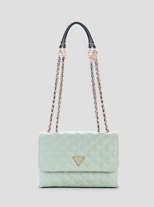 GUESS Womens Green Gully Double Convertible Flap Bag BQ967320 Front View GUESS Womens Green Gully Double Convertible Flap Bag BQ967320 Front Side View GUESS Womens Green Gully Double Convertible Flap Bag BQ967320 Inside View GUESS Womens Green Gully Double Convertible Flap Bag BQ967320 Back View