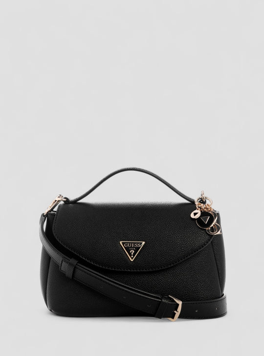 GUESS Womens Black Evie Top Handle Flap Bag BG966420 Front View GUESS Womens Black Evie Top Handle Flap Bag BG966420 Model View GUESS Womens Black Evie Top Handle Flap Bag BG966420 Front Side View GUESS Womens Black Evie Top Handle Flap Bag BG966420 Inside View GUESS Womens Black Evie Top Handle Flap Bag BG966420 Back View