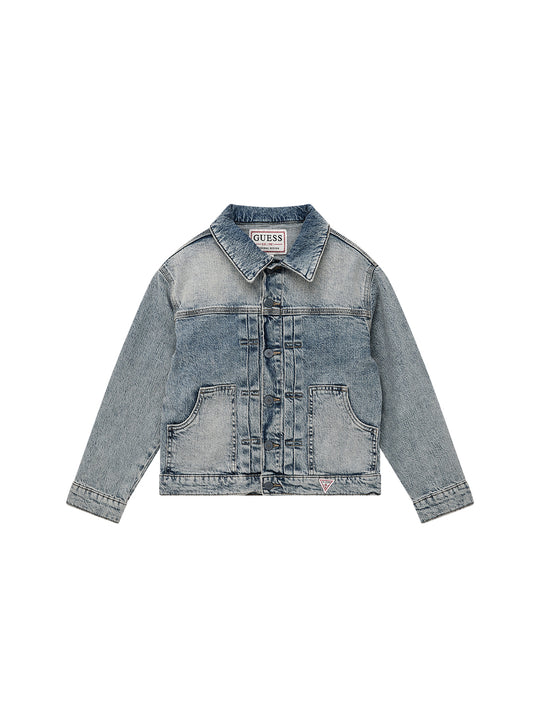 GUESS Kids Blue Comfort Denim Oversize Jacket (7-16) L5GL00D5KQ1 Front View GUESS Kids Blue Comfort Denim Oversize Jacket (7-16) L5GL00D5KQ1 Back View