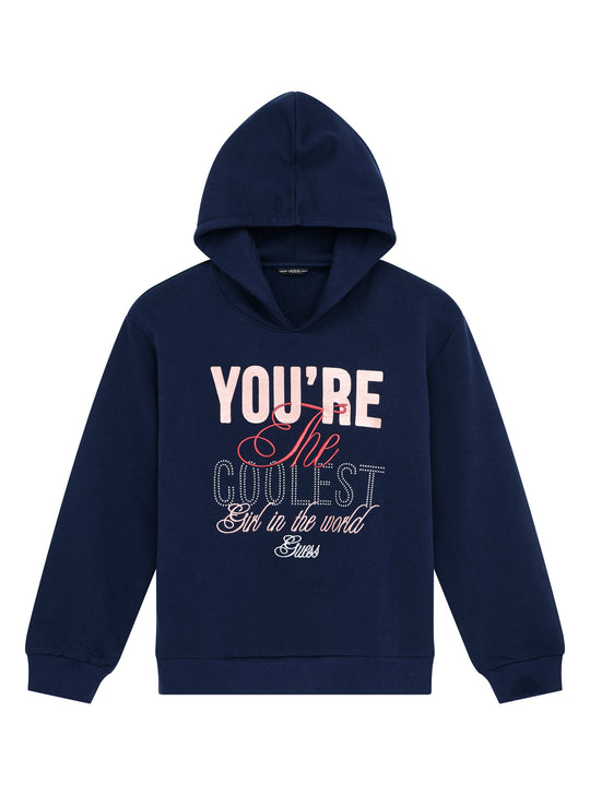Keep her cozy and confident in this Eco Blue Long Sleeve Active Hooded Top (7-16). Featuring a bold “You’re the Coolest Girl in the World” slogan across the front, this hoodie adds fun personality to her casual style. Made from 100% cotton, it delivers comfort and breathability for everyday wear.