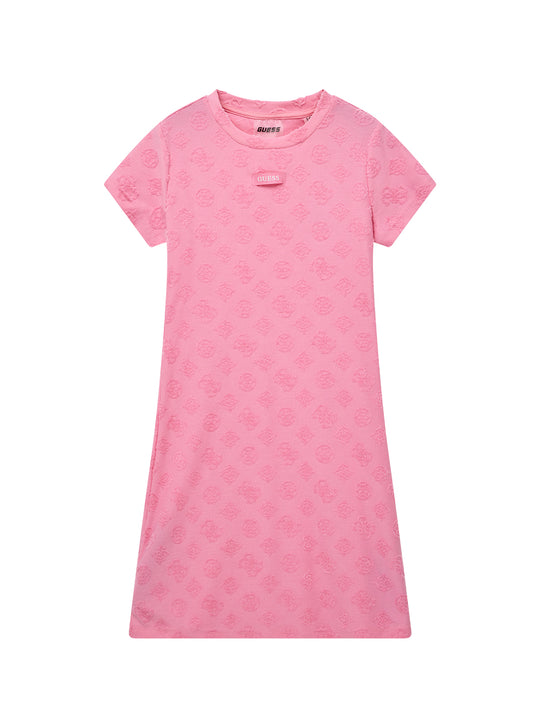 GUESS Kids Pink Logo Mini Me Dress (4-14) J5GK38KCT02 Front View GUESS Kids Pink Logo Mini Me Dress (4-14) J5GK38KCT02 Back View