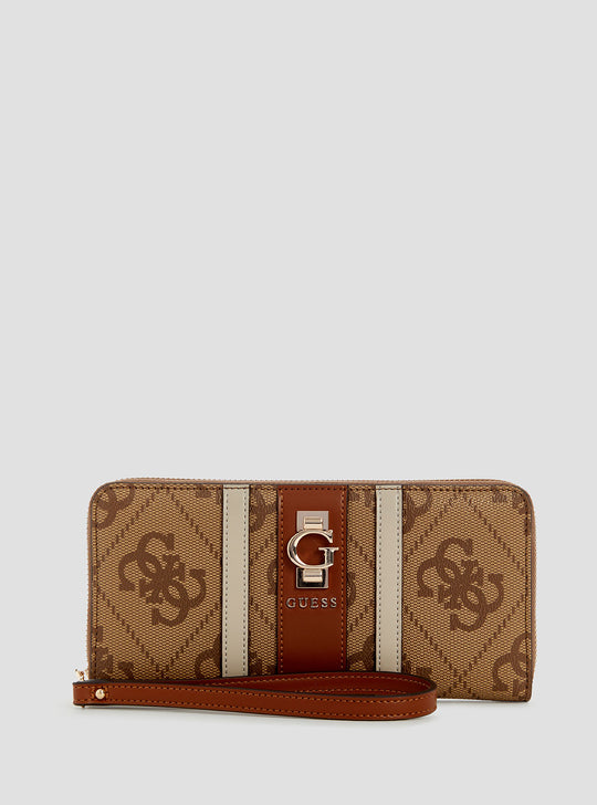 GUESS Womens Brown Logo Erenia Large Zip Around Wallet SO7838146 Front View GUESS Womens Brown Logo Erenia Large Zip Around Wallet SO7838146 Back View GUESS Womens Brown Logo Erenia Large Zip Around Wallet SO7838146 Inside View