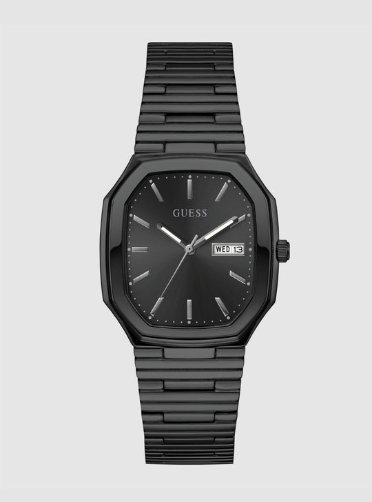 Elevate your wristwear with the sleek and understated Black Oliver Watch. Designed with a distinctive octagonal case and a sunray black dial, this timepiece delivers bold minimalism with everyday versatility. The polished black recycled steel bracelet adds a modern edge, while the day-date display ensures you're always on time and on trend.