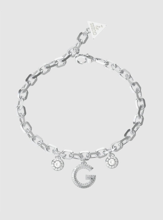 GUESS Accessories Silver G Pavé Multi Charm Bracelet JUBB05445JW Front View GUESS Accessories Silver G Pavé Multi Charm Bracelet JUBB05445JW Detail View