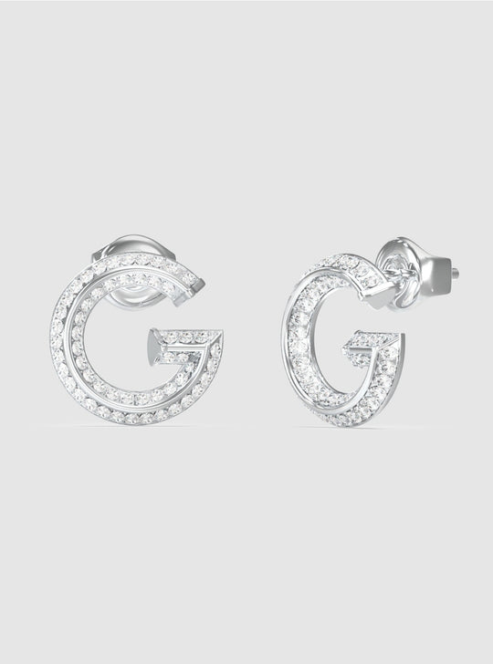 GUESS Accessories Silver G Pavé Stud Earrings JUBE05443JW Front View GUESS Accessories Silver G Pavé Stud Earrings JUBE05443JW Detail View