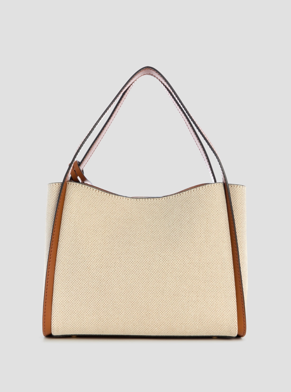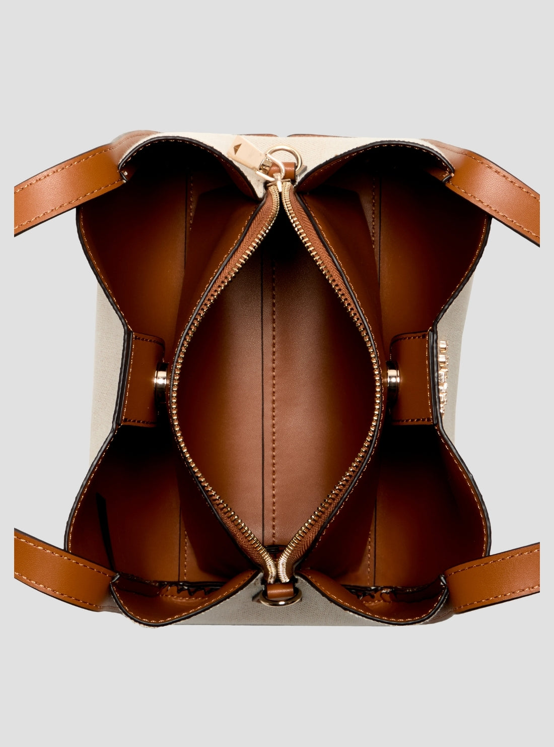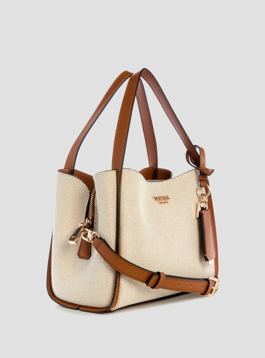 GUESS Womens Beige Brown Nicolette Small Girlfriend Satchel Front View GUESS Womens Beige Brown Nicolette Small Girlfriend Satchel Front Side View GUESS Womens Beige Brown Nicolette Small Girlfriend Satchel Inside View GUESS Womens Beige Brown Nicolette Small Girlfriend Satchel Back View