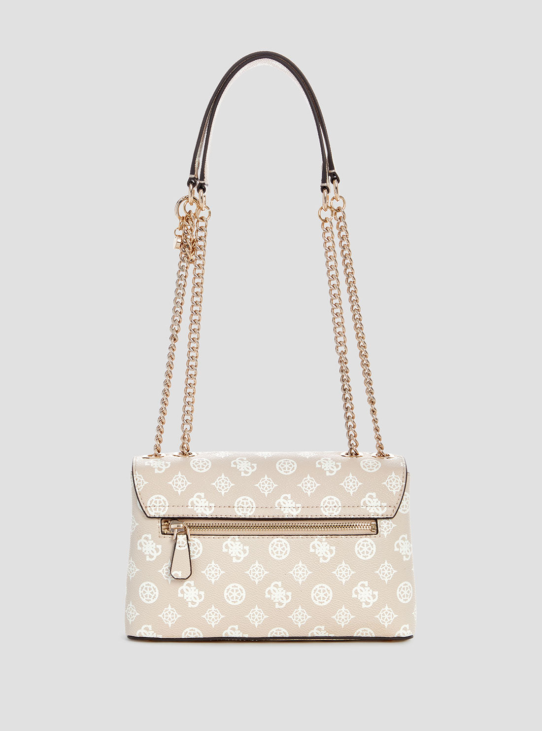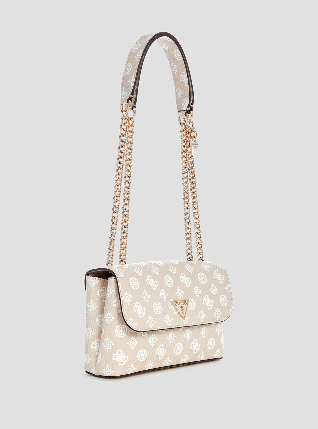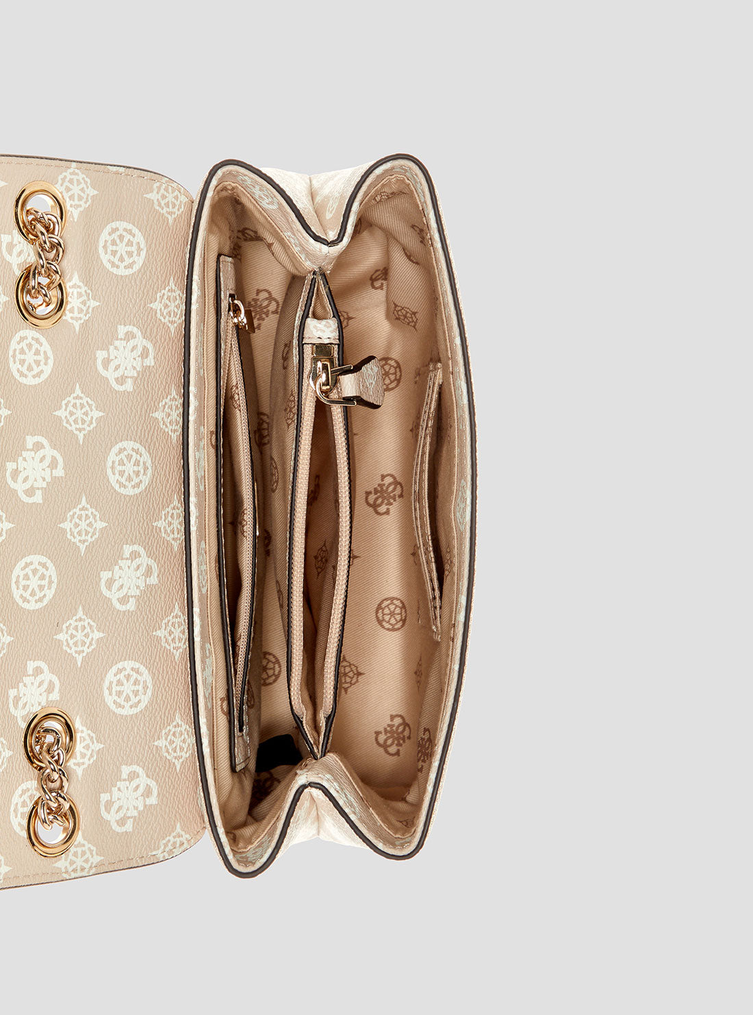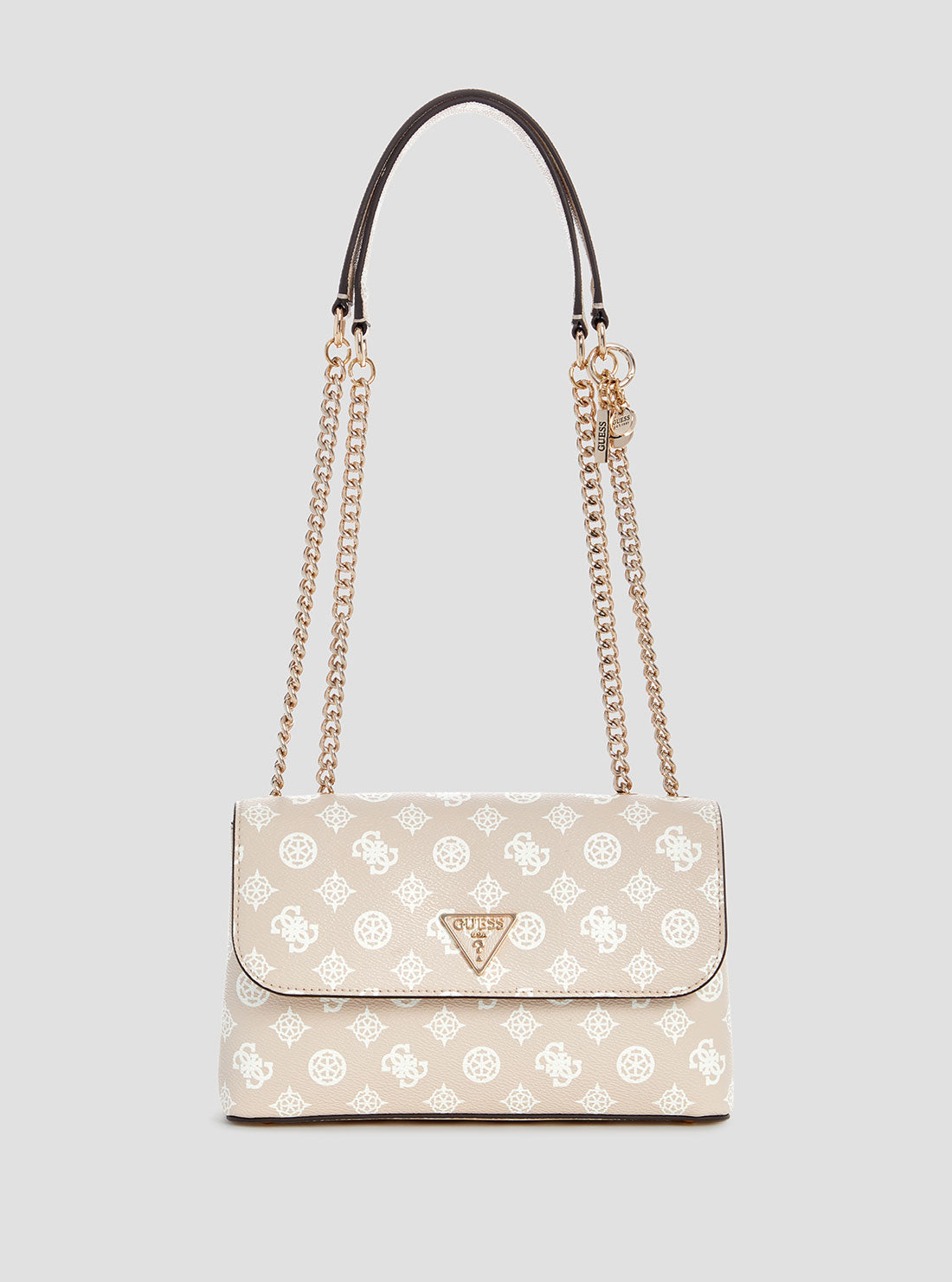 Add a touch of whimsy to your outfit with our Beige Logo Daryna Crossbody Bag. The chain strap makes it easy to wear, while the half flap closure adds a playful element. The printed peony PU base and shiny gold hardware bring a unique flair, and the logo detail adds a chic touch.