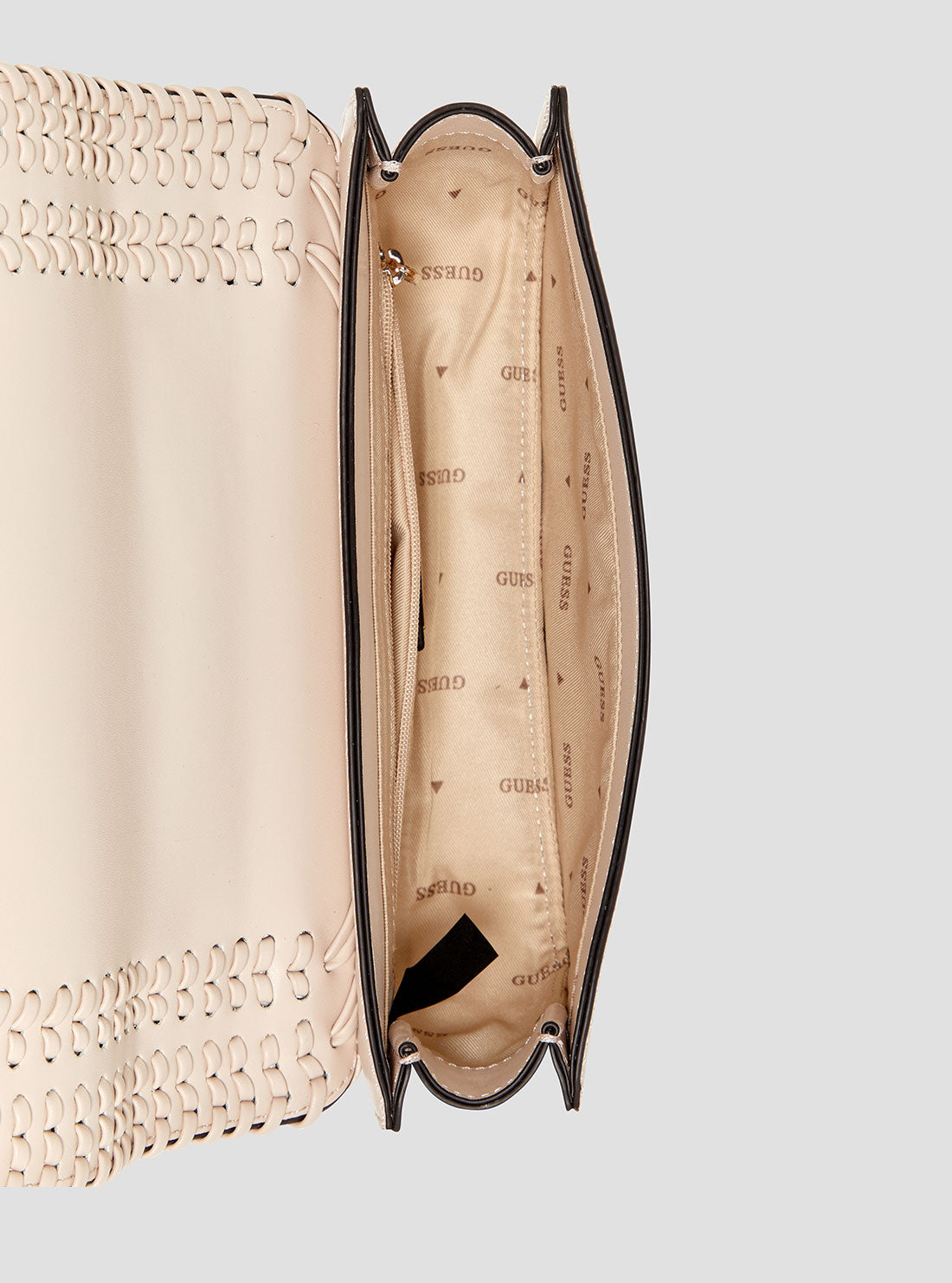 GUESS Womens Beige Tatum Convertible Crossbody Flap Bag NG966721 Front View GUESS Womens Beige Tatum Convertible Crossbody Flap Bag NG966721 Front Side View GUESS Womens Beige Tatum Convertible Crossbody Flap Bag NG966721 Inside View GUESS Womens Beige Tatum Convertible Crossbody Flap Bag NG966721 Back View