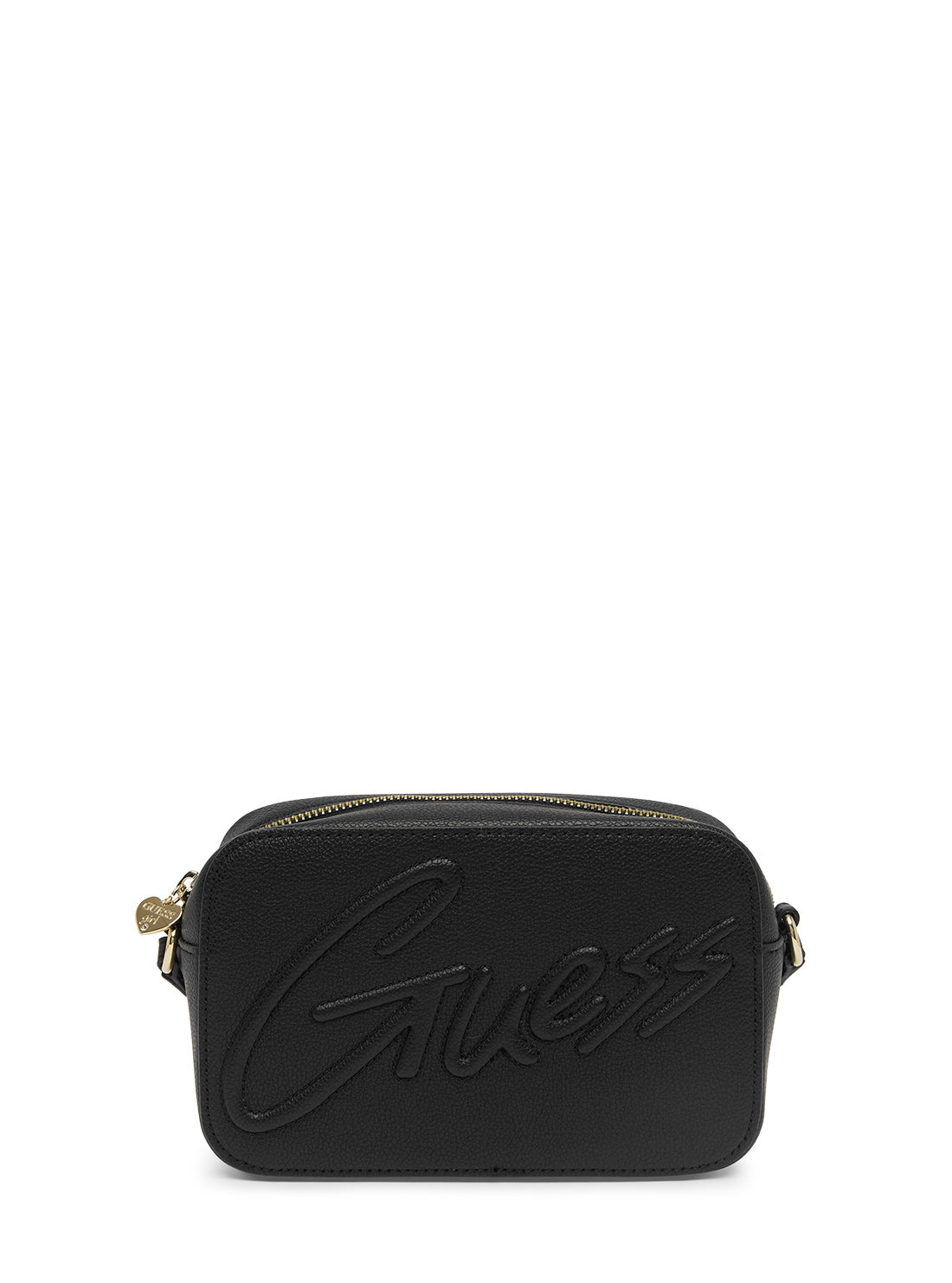 Minimalist yet modern, the Guess kids Camera Bag in black is a versatile crossbody perfect for everyday style. Crafted from smooth faux leather, this compact design features a bold tonal Guess script on one side and a classic metallic logo on the other. The zip-top closure and long crossbody strap offer functionality with a fashion-forward edge.