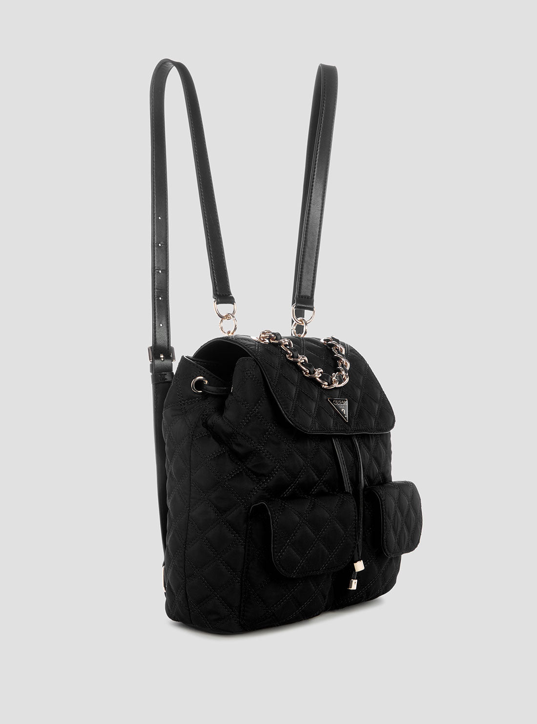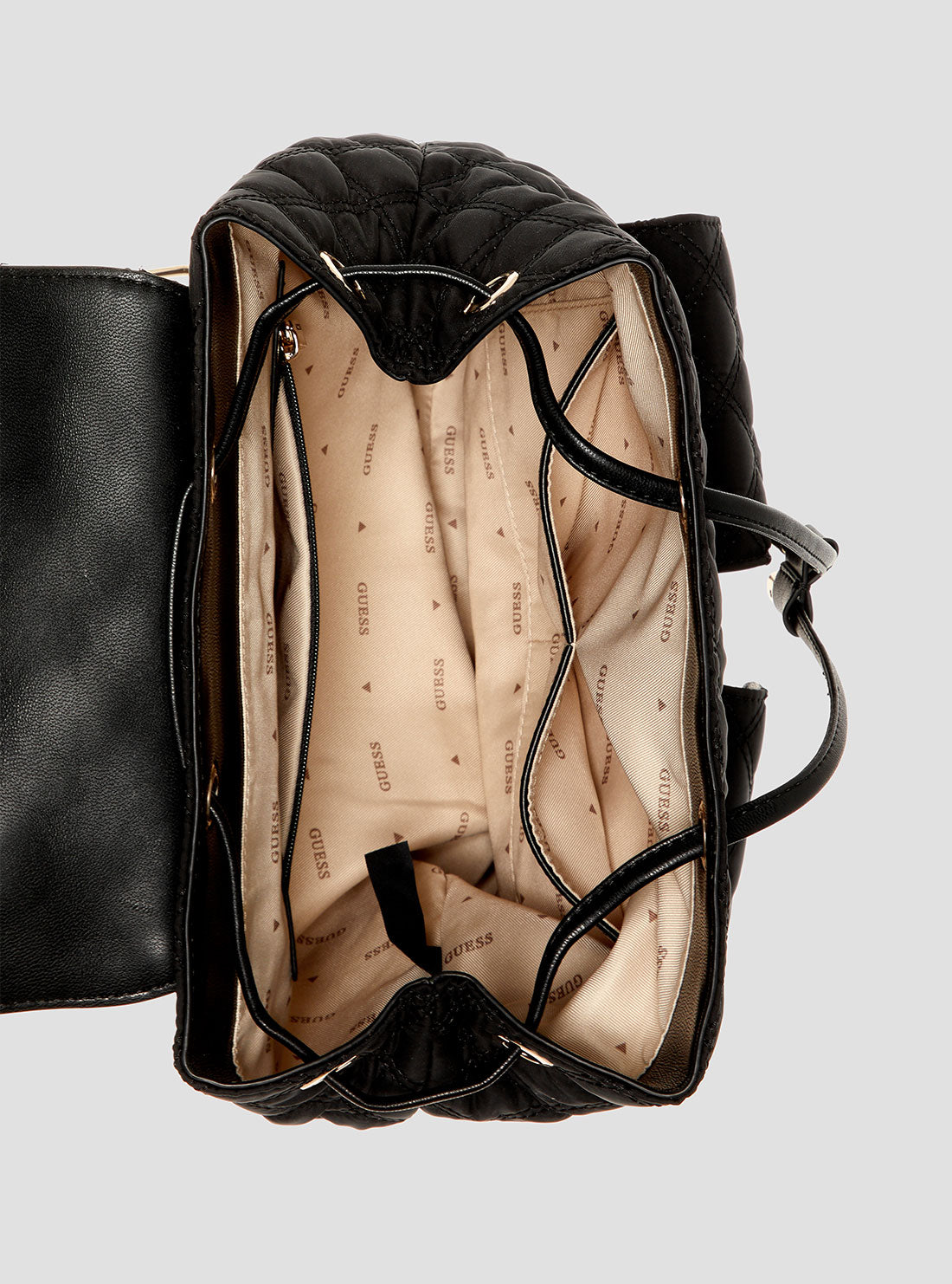 GUESS Womens Black Giully II Flap Backpack YQ967333 Front View GUESS Womens Black Giully II Flap Backpack YQ967333 Front Side View GUESS Womens Black Giully II Flap Backpack YQ967333 Inside View GUESS Womens Black Giully II Flap Backpack YQ967333 Back View
