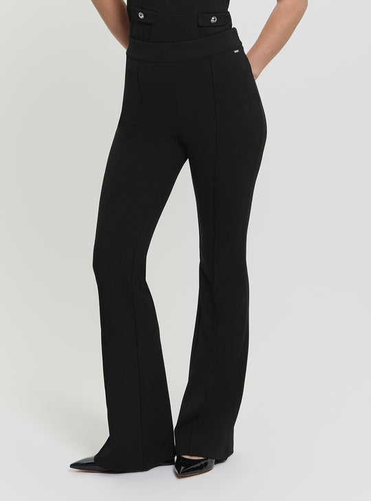 GUESS Womens Black High-Rise Slim Fit Flared Evelina Pants W4YB01KCBO2 Front View GUESS Womens Black High-Rise Slim Fit Flared Evelina Pants W4YB01KCBO2 Full View GUESS Womens Black High-Rise Slim Fit Flared Evelina Pants W4YB01KCBO2 Detail View GUESS Womens Black High-Rise Slim Fit Flared Evelina Pants W4YB01KCBO2 Back View