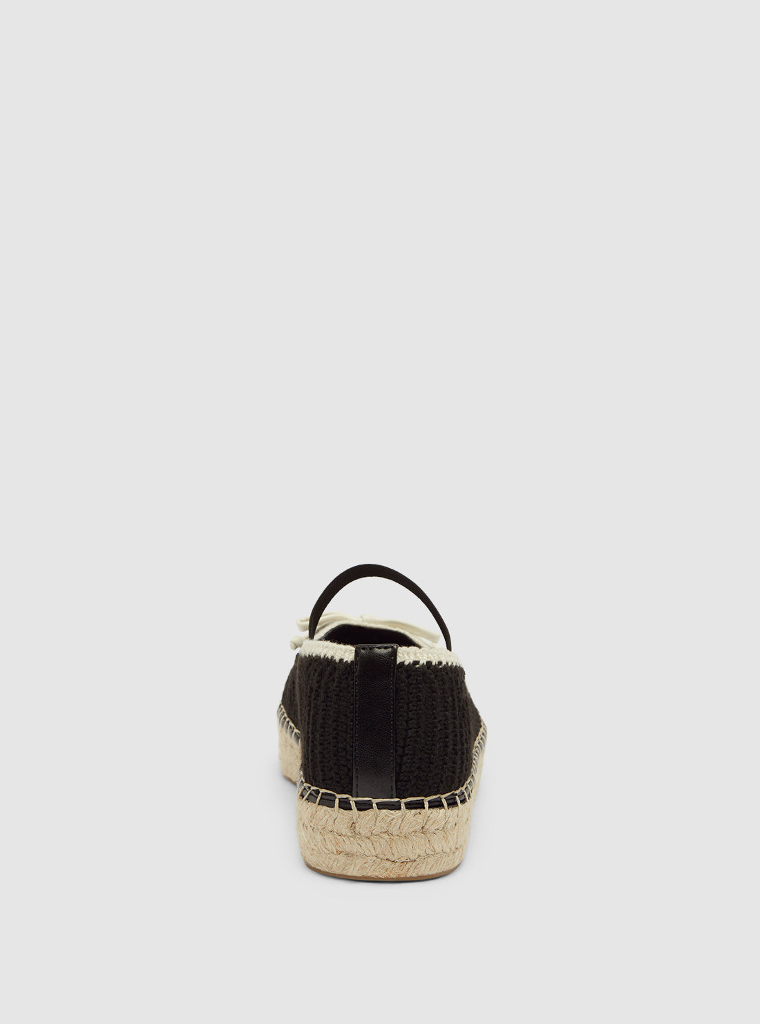 Step into effortless summer style with the Black Joneal Espadrille Flats. This chic black espadrille features a two-tone woven raffia upper with a contrasting beige toe cap for a classic, beach-inspired look. A beige bow detail at the front and an elastic GUESS logo strap across the instep add feminine flair and a secure fit. Finished with a natural jute-wrapped platform sole, these flats are perfect for warm-weather days, vacations, and relaxed resort wear.