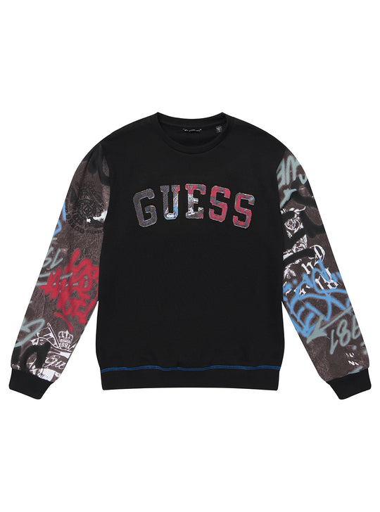 Add some attitude to his everyday look with the GUESS Long Sleeve Active Top. Crafted from soft, mid-weight 100% cotton jersey, this casual black sweatshirt features bold graphic sleeve prints and a statement logo appliqué at the front. It’s perfect for stylish layering and all-day comfort.