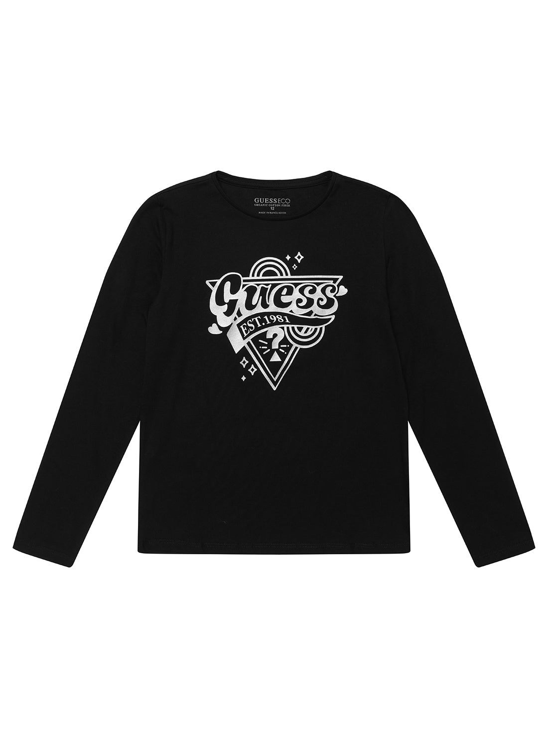 Get ready to rock the cool and casual look with our GUESS Kids Black Long Sleeve T-Shirt! Perfect for any occasion, this t-shirt features a colourful GUESS logo print, long sleeves, and a comfy crew neckline. Made with a blend of 95% cotton and 5% elastane spandex, it offers comfort and style in one. Perfect for layering or wearing on its own!