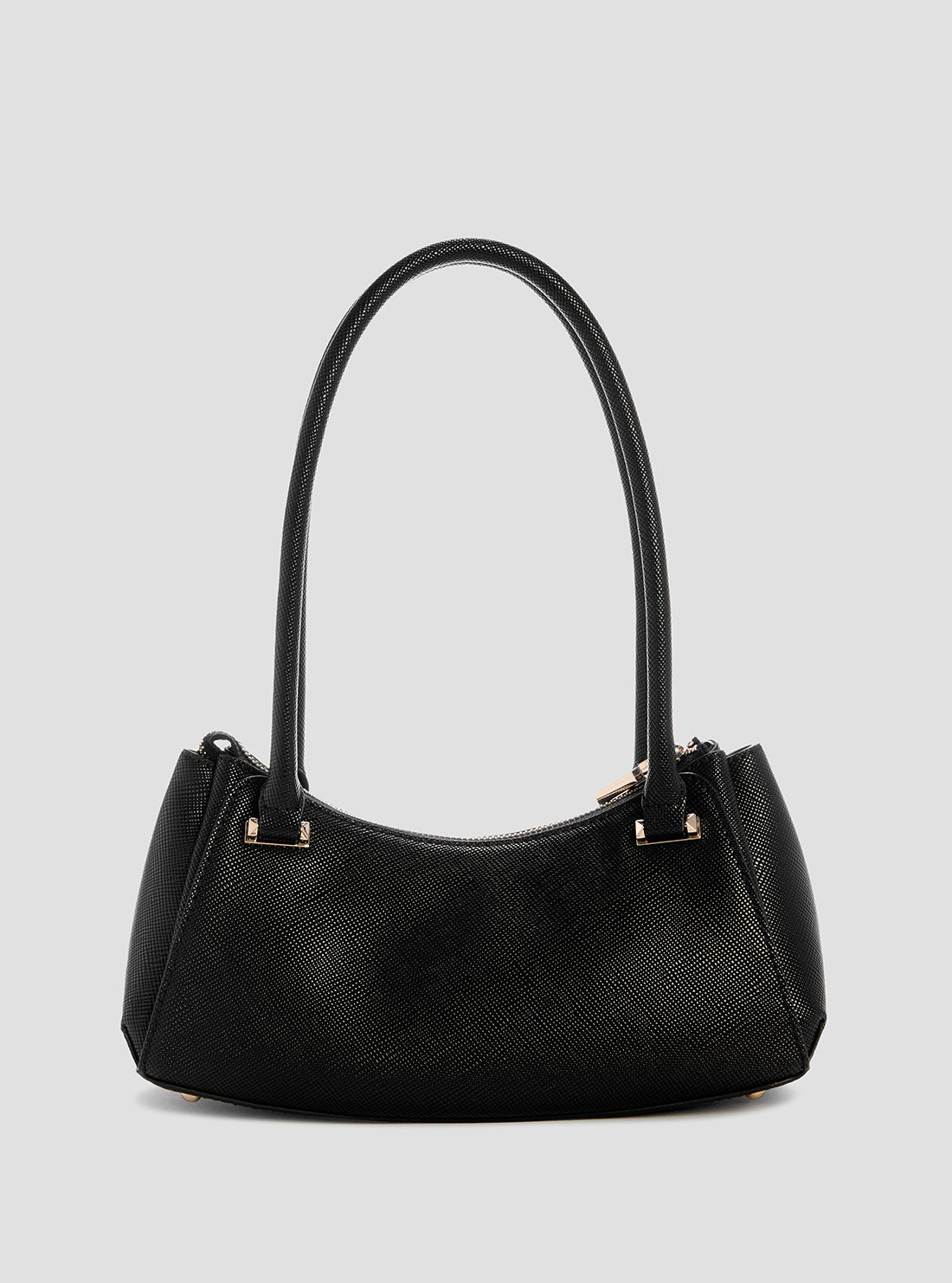 Refine your everyday look with the Black Rosalba Top Zip Shoulder Bag from GUESS. This sleek and structured silhouette features a secure zip-around closure, making it perfect for workdays, brunch outings, or casual nights out. Its compact size and elegant gold-tone hardware deliver both style and convenience. Designed with eco saffiano PU, it offers a polished finish that pairs effortlessly with any outfit.