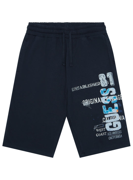 GUESS Kids Blue Graphic Printed Active Shorts Front View GUESS Kids Blue Graphic Printed Active Shorts Back View