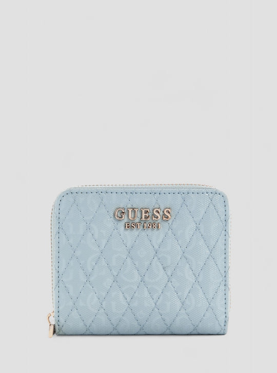 GUESS Accessories Blue Logo Betula Small Zip Around Wallet GG9626137 Front View GUESS Accessories Blue Logo Betula Small Zip Around Wallet GG9626137 Back View GUESS Accessories Blue Logo Betula Small Zip Around Wallet GG9626137 Inside View