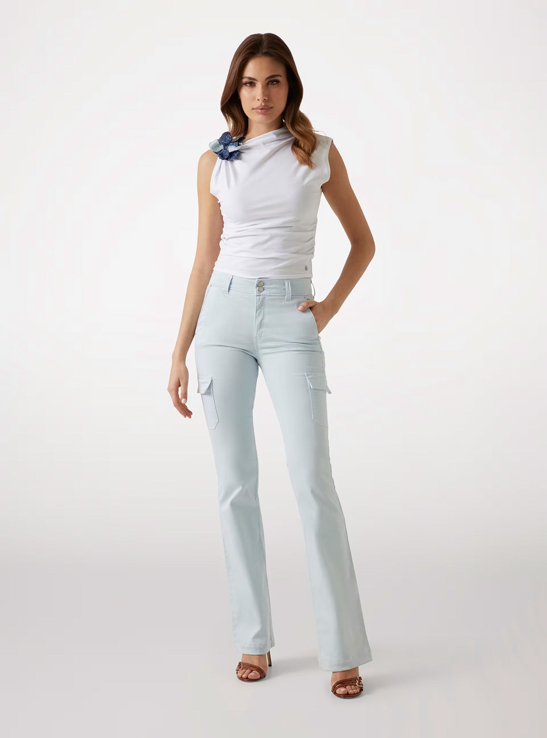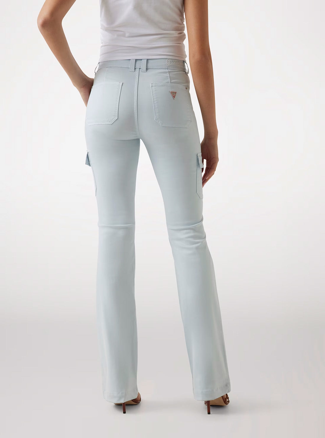 GUESS Women's Blue Mid Rise Slim Fit Cargo Mini Boot Pants W5GA1BW93CL Front View GUESS Women's Blue Mid Rise Slim Fit Cargo Mini Boot Pants W5GA1BW93CL Full View GUESS Women's Blue Mid Rise Slim Fit Cargo Mini Boot Pants W5GA1BW93CL Close Up View GUESS Women's Blue Mid Rise Slim Fit Cargo Mini Boot Pants W5GA1BW93CL Back View GUESS Women's Blue Mid Rise Slim Fit Cargo Mini Boot Pants W5GA1BW93CL Ghost View