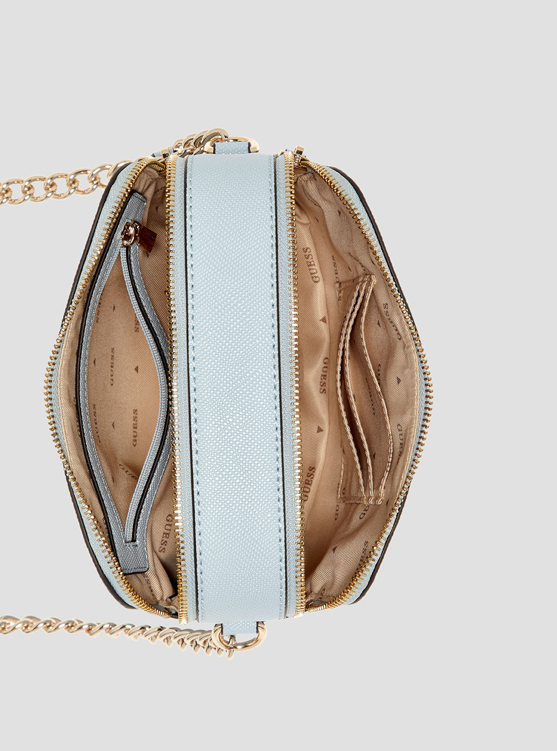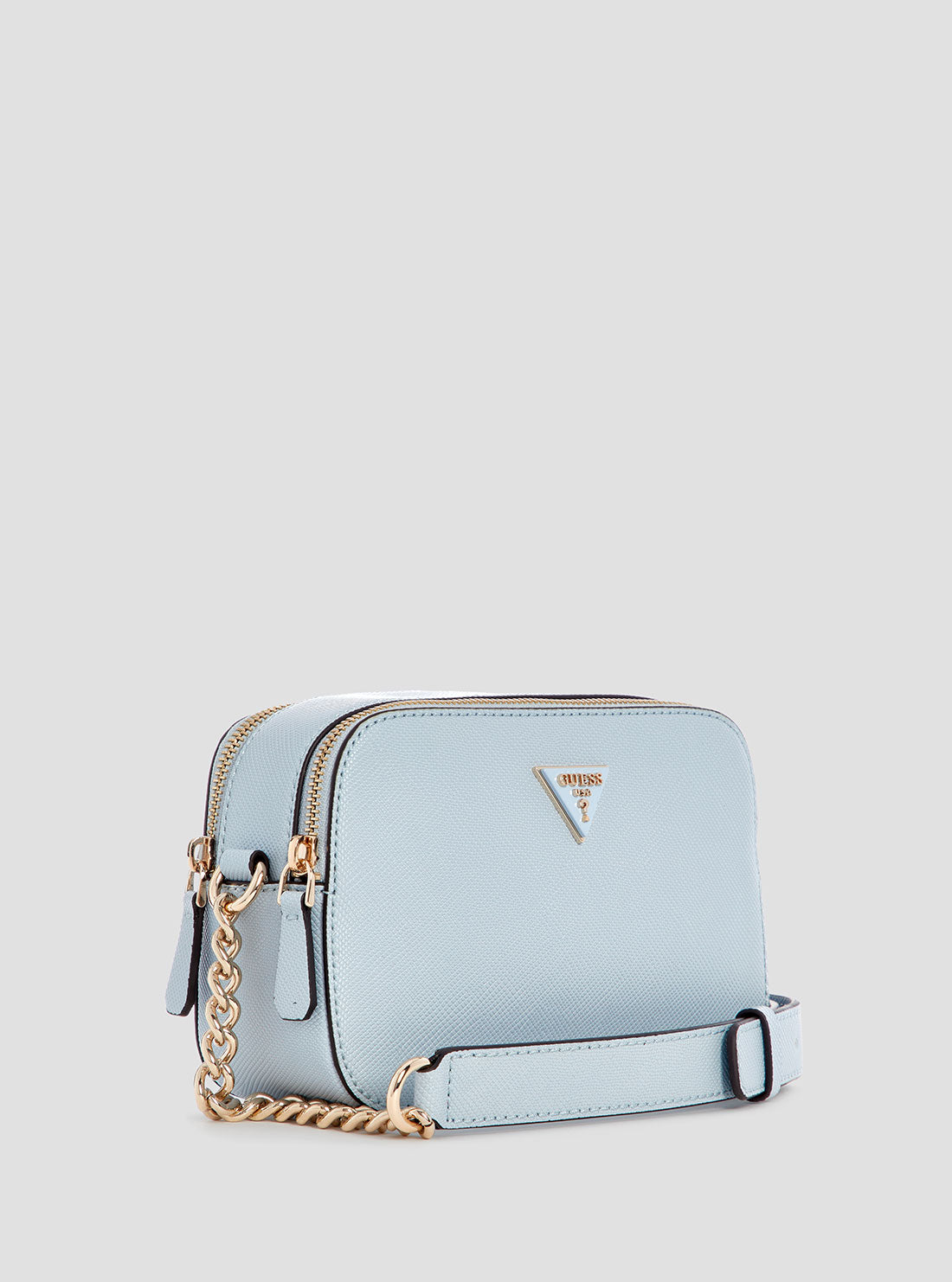 Blue noelle double zip camera crossbody bag