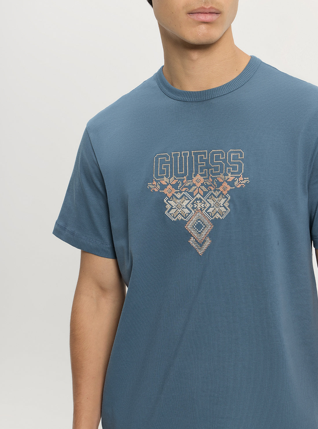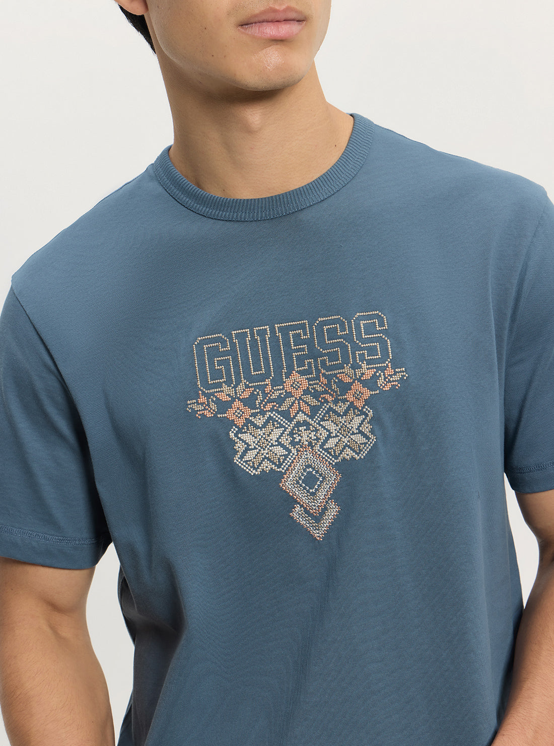 GUESS Mens Blue Regular Fit Triangle Logo T-Shirt M5GI11K8FQ4 Front View GUESS Mens Blue Regular Fit Triangle Logo T-Shirt M5GI11K8FQ4 Full View GUESS Mens Blue Regular Fit Triangle Logo T-Shirt M5GI11K8FQ4 Side View GUESS Mens Blue Regular Fit Triangle Logo T-Shirt M5GI11K8FQ4 Detail View GUESS Mens Blue Regular Fit Triangle Logo T-Shirt M5GI11K8FQ4 Detail View_2 GUESS Mens Blue Regular Fit Triangle Logo T-Shirt M5GI11K8FQ4 Back View