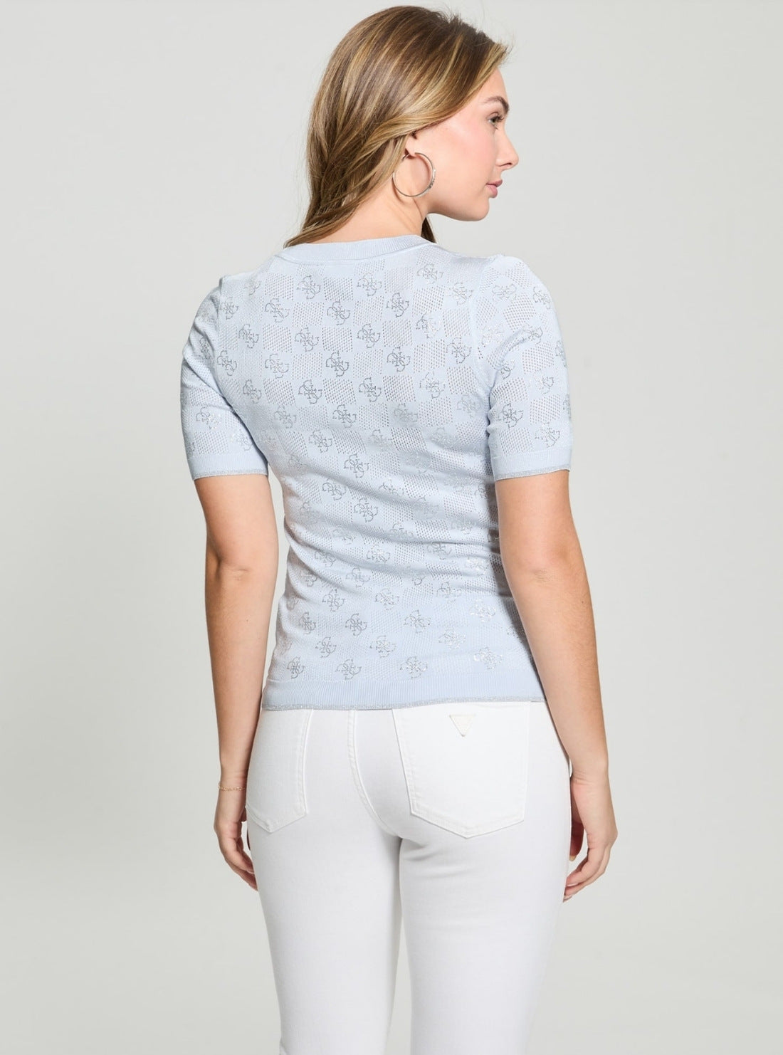 GUESS Womens Blue Rosie 4G Logo Knit Sweater W5GR20Z3D60 Front View GUESS Womens Blue Rosie 4G Logo Knit Sweater W5GR20Z3D60 Detail View GUESS Womens Blue Rosie 4G Logo Knit Sweater W5GR20Z3D60 Full View GUESS Womens Blue Rosie 4G Logo Knit Sweater W5GR20Z3D60 Back View