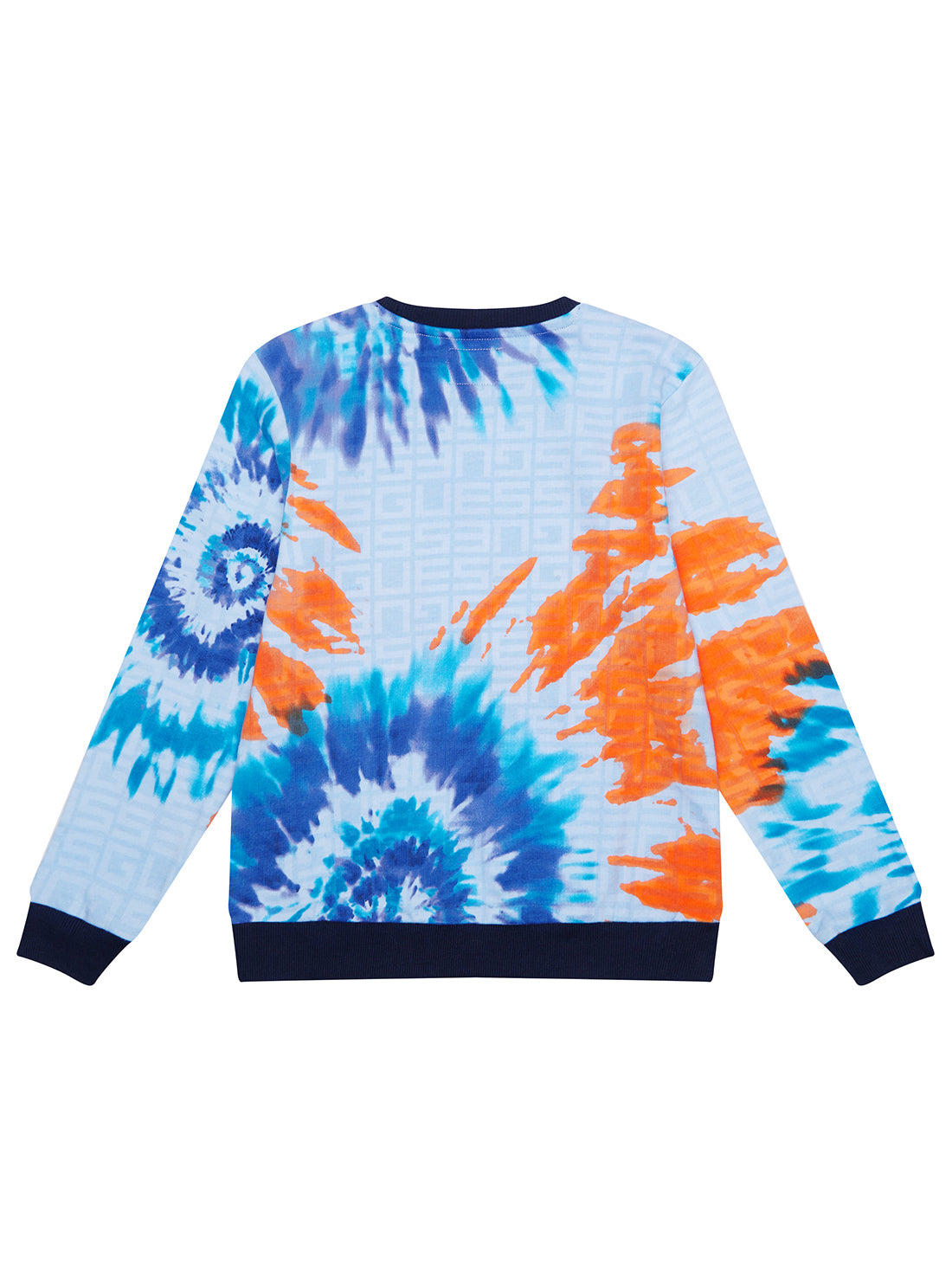 GUESS Kids Blue Tie-Dye Long Sleeve Active Top (2–7) N5GQ00KA6R4 Front View GUESS Kids Blue Tie-Dye Long Sleeve Active Top (2–7) N5GQ00KA6R4 Back View