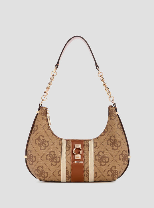 GUESS Womens Brown Logo Erenia Top Zip Shoulder Bag SO783818 Front View GUESS Womens Brown Logo Erenia Top Zip Shoulder Bag SO783818 Model View GUESS Womens Brown Logo Erenia Top Zip Shoulder Bag SO783818 Front Side View GUESS Womens Brown Logo Erenia Top Zip Shoulder Bag SO783818 Inside View GUESS Womens Brown Logo Erenia Top Zip Shoulder Bag SO783818 Back View