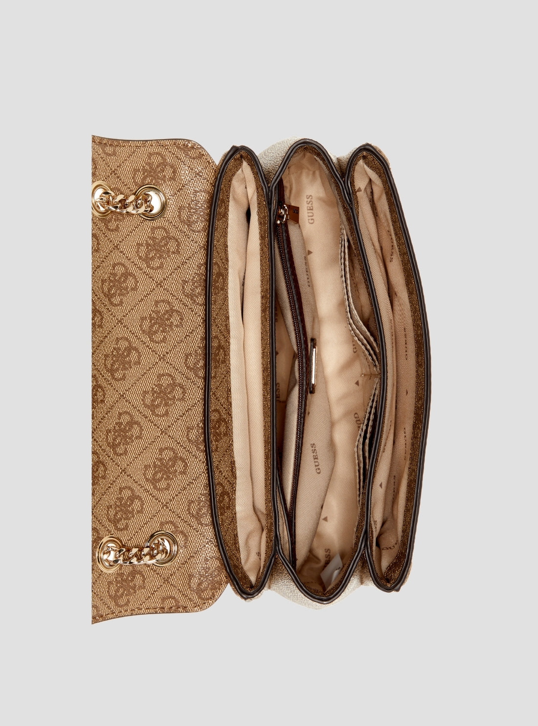 GUESS Womens Brown Logo Noelle Convertible Crossbody Flap Bag Front View GUESS Womens Brown Logo Noelle Convertible Crossbody Flap Bag Front Side View GUESS Womens Brown Logo Noelle Convertible Crossbody Flap Bag Inside View GUESS Womens Brown Logo Noelle Convertible Crossbody Flap Bag Back View