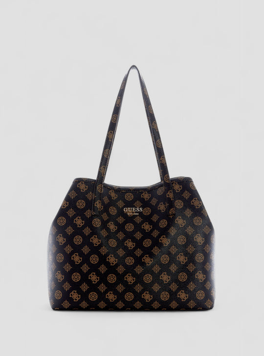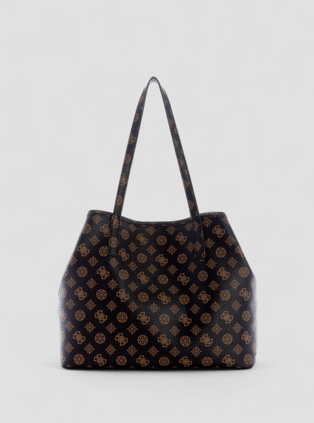 GUESS Womens Brown Logo Vikky Tote Bag PQ699523 Front View GUESS Womens Brown Logo Vikky Tote Bag PQ699523 Front Side View GUESS Womens Brown Logo Vikky Tote Bag PQ699523 Back View