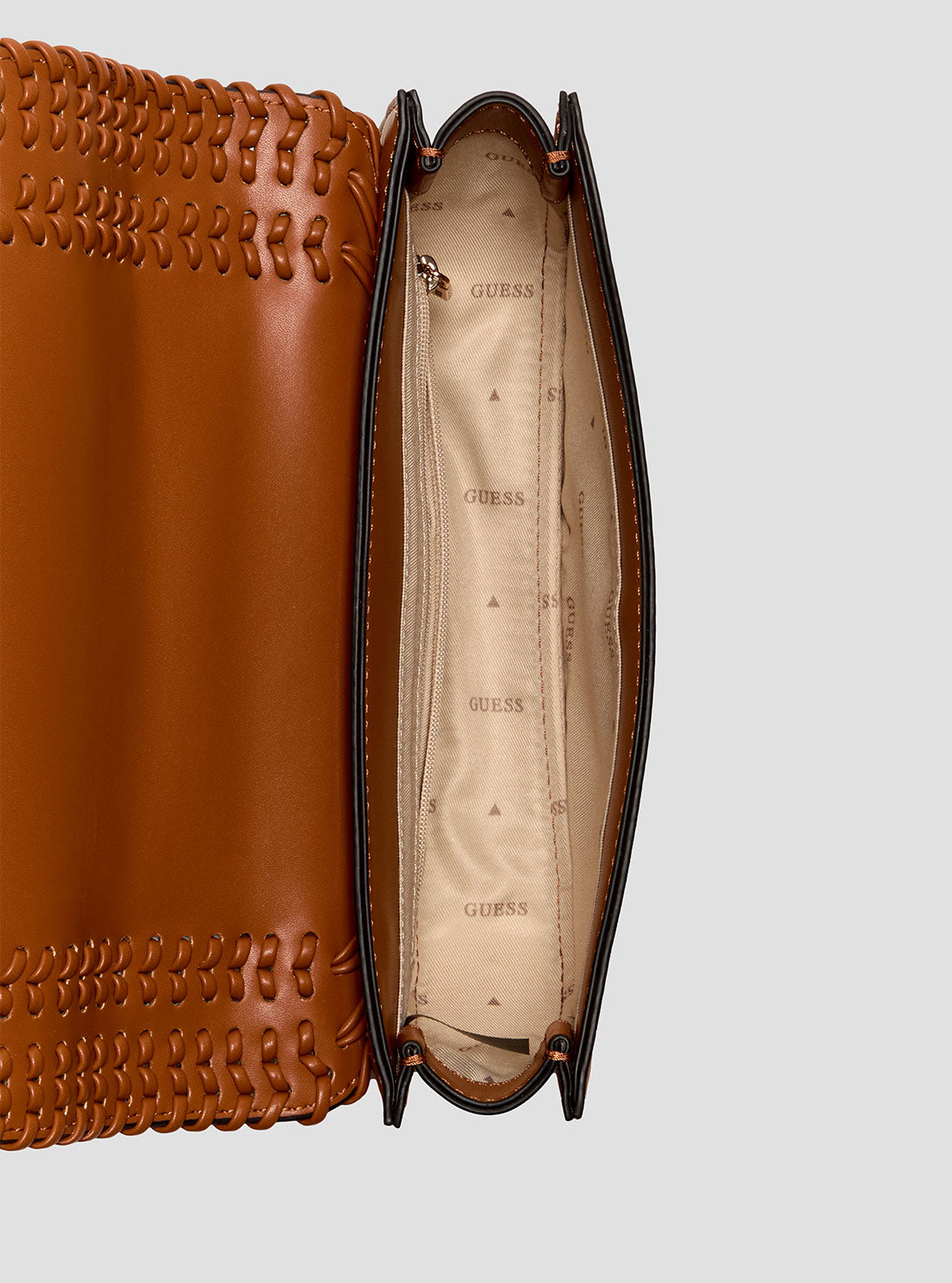 GUESS Womens Brown Tatum Convertible Crossbody Flap NG966721 Front View GUESS Womens Brown Tatum Convertible Crossbody Flap NG966721 Model View GUESS Womens Brown Tatum Convertible Crossbody Flap NG966721 Front Side View GUESS Womens Brown Tatum Convertible Crossbody Flap NG966721 Inside View GUESS Womens Brown Tatum Convertible Crossbody Flap NG966721 Back View