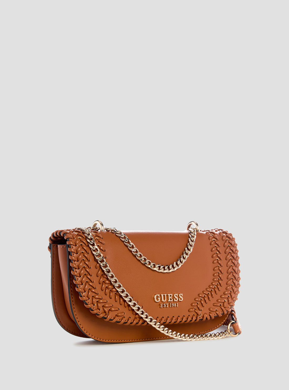 Add a chic touch to your look with the Brown Tatum Convertible Crossbody Flap by GUESS. Featuring a flap magnetic closure and a stylish chain and leatherette strap, this compact crossbody is perfect for day-to-night wear. The whipstitch trim along the flap and strap adds a subtle yet sophisticated detail, making it ideal for casual outings or evening events.
