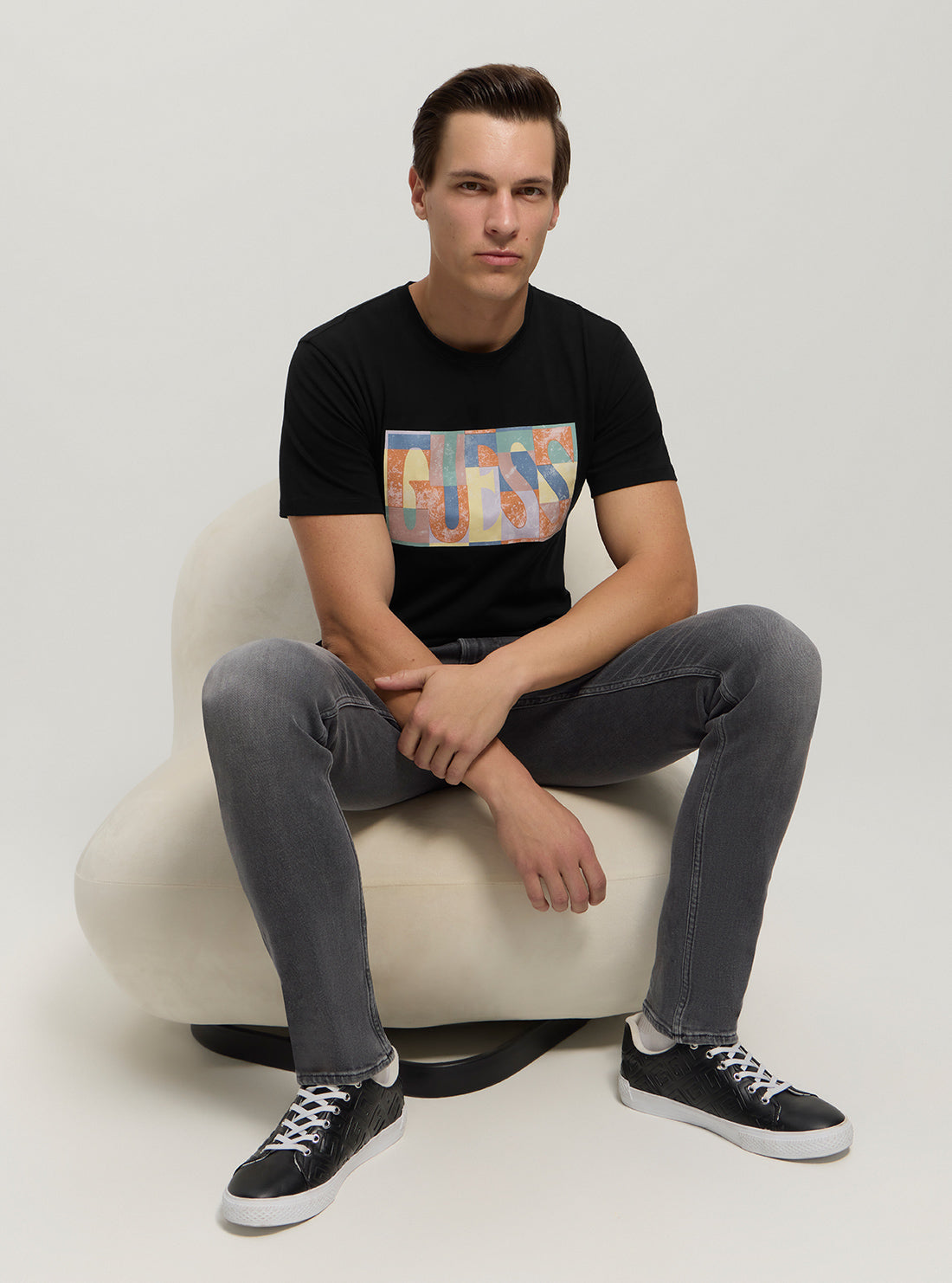Rock the eco-friendly trend with our playful Eco Black Logo Mosaic T-Shirt. Made from 100% cotton, this t-shirt features short sleeves, a crew neckline, and a striking logo detail. Get ready to look and feel good with this quirky and stylish top.