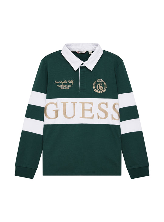 GUESS Kids Eco Green Long Sleeve Polo Shirt (7-16) L5YP01KCNQ4 Front View GUESS Kids Eco Green Long Sleeve Polo Shirt (7-16) L5YP01KCNQ4 Back View