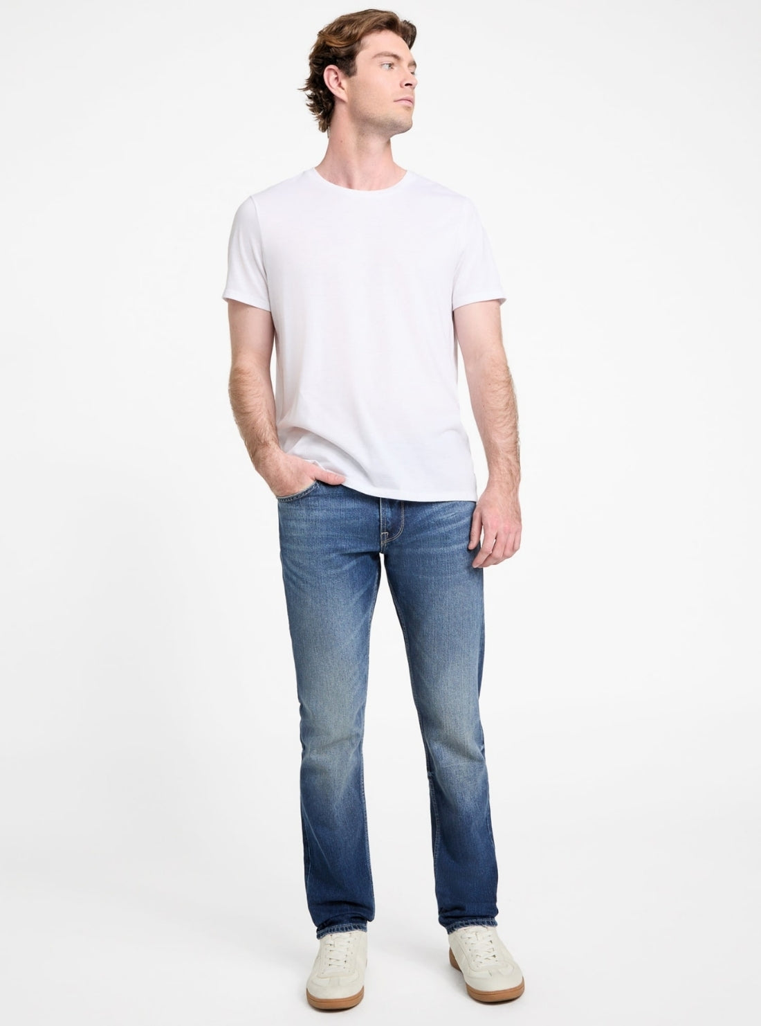 GUESS Mens Eco Mid Rise Regular Fit Finnley Tapered Jeans in Medium Wash M5GAS2D4Z80 Front View GUESS Mens Eco Mid Rise Regular Fit Finnley Tapered Jeans in Medium Wash M5GAS2D4Z80 Full View GUESS Mens Eco Mid Rise Regular Fit Finnley Tapered Jeans in Medium Wash M5GAS2D4Z80 Detail View GUESS Mens Eco Mid Rise Regular Fit Finnley Tapered Jeans in Medium Wash M5GAS2D4Z80 Back Detail View GUESS Mens Eco Mid Rise Regular Fit Finnley Tapered Jeans in Medium Wash M5GAS2D4Z80 Back View