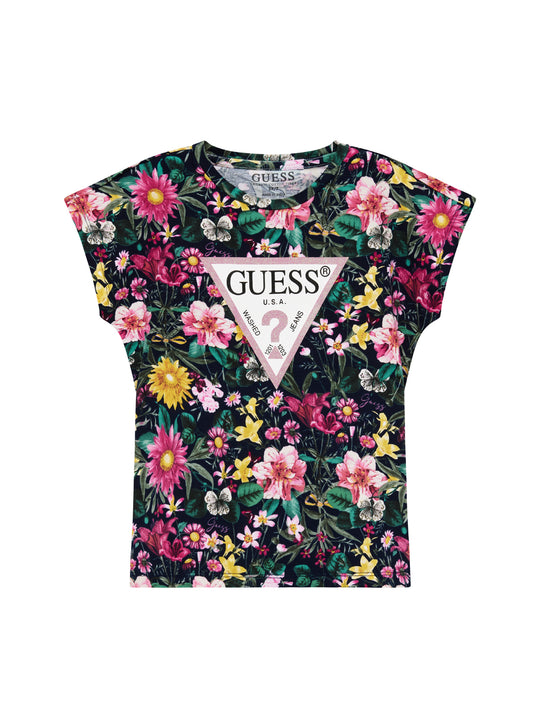 GUESS Kids Eco Multi Floral Short Sleeve T-Shirt (2-7) K5YI02K6YW4 Front View GUESS Kids Eco Multi Floral Short Sleeve T-Shirt (2-7) K5YI02K6YW4 Back View