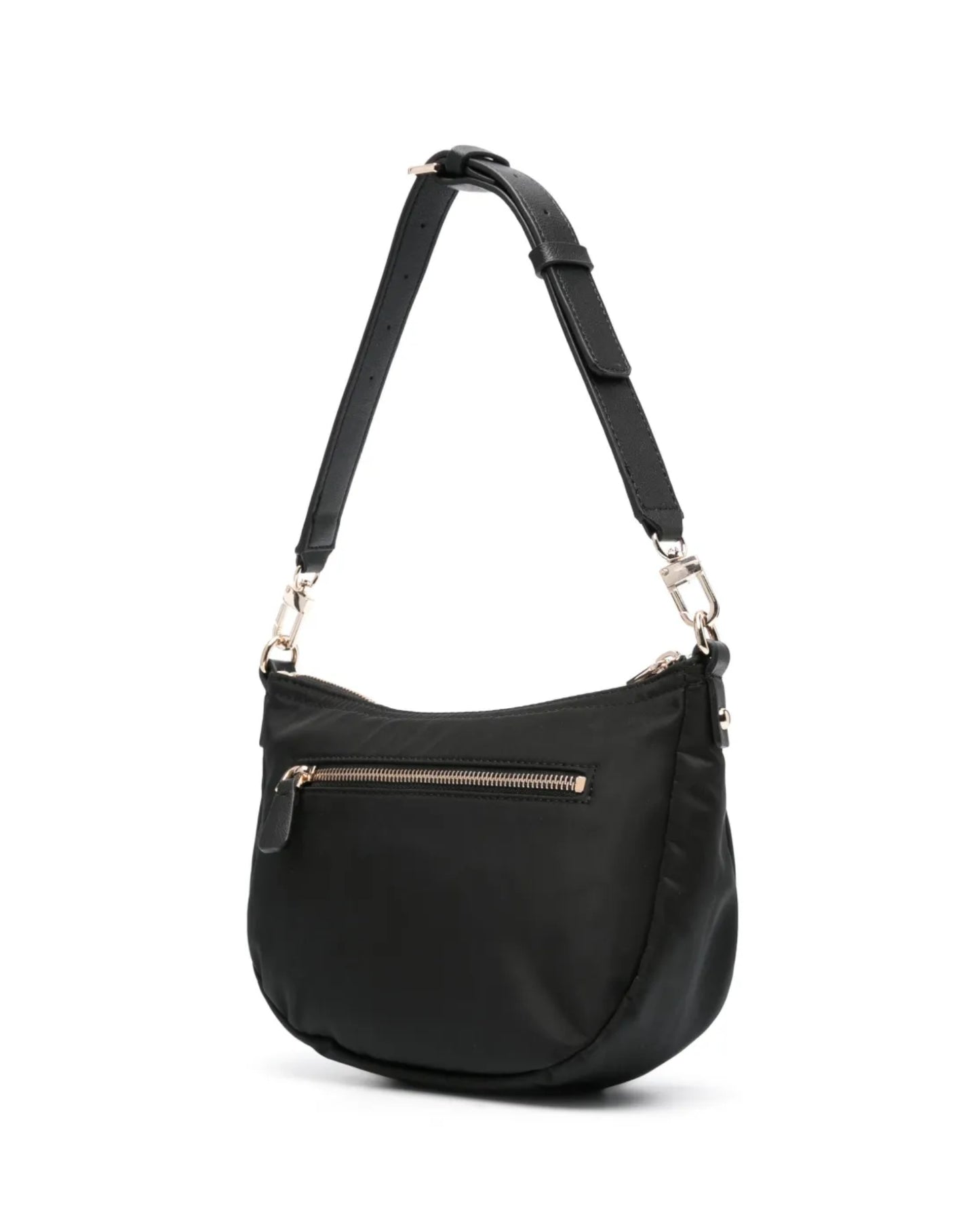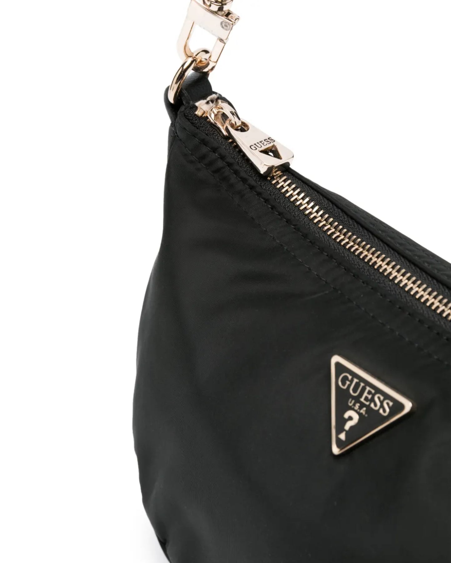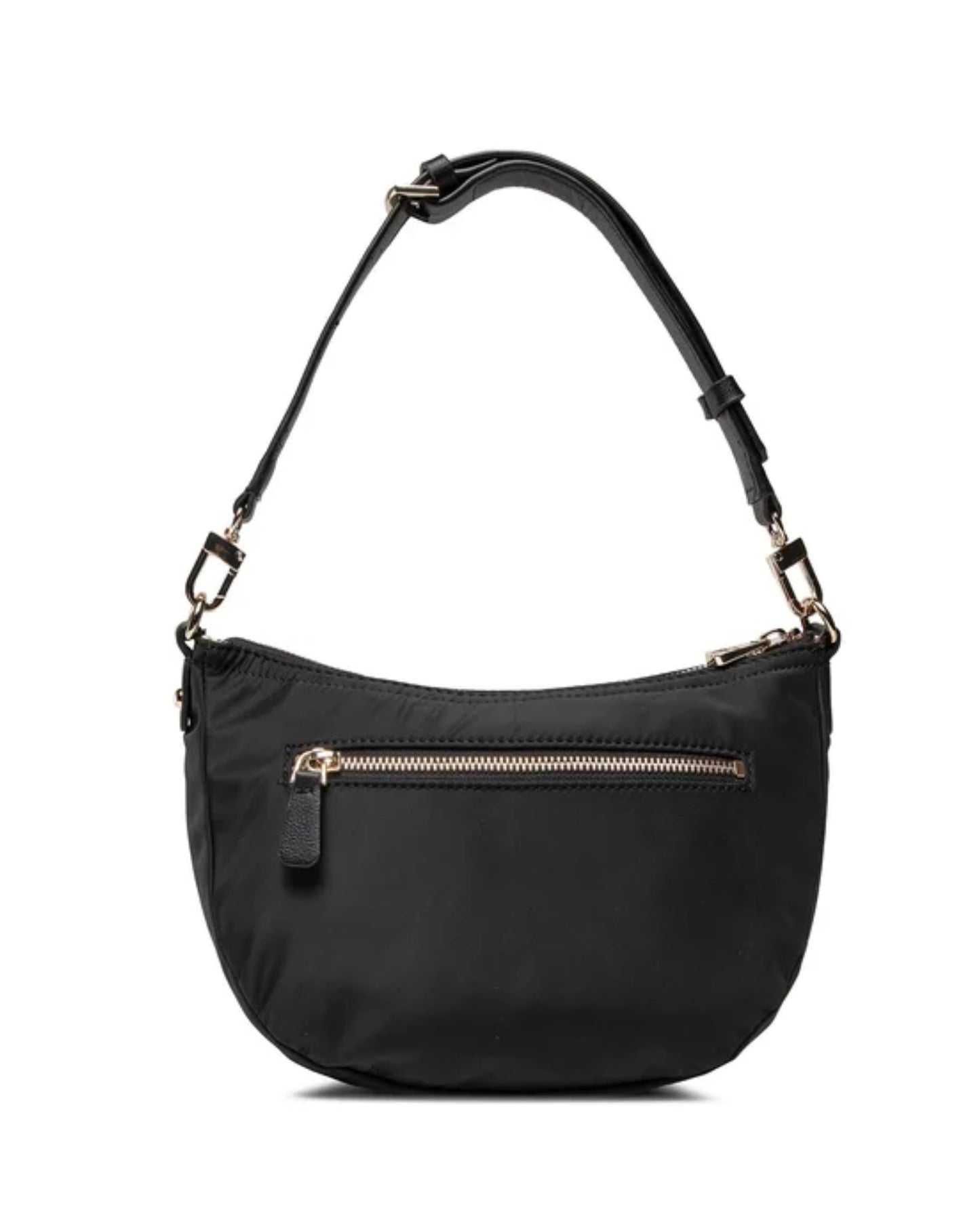Add a touch of sophistication to your look with the Eco Gemma Hobo Shoulder Bag by GUESS. Crafted from recycled nylon, this stylish black shoulder bag features an adjustable shoulder strap for versatile wear. The zip-around closure keeps your essentials secure, making it a perfect everyday accessory.
