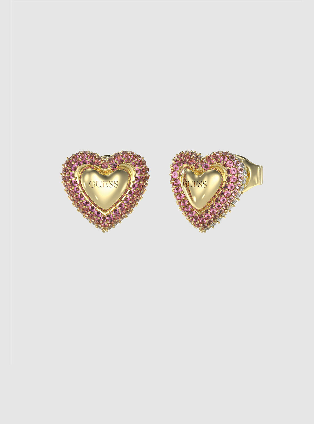 GUESS Accessories Gold Pink Heart Stud Earrings JUBE05008JWYG Front View GUESS Accessories Gold Pink Heart Stud Earrings JUBE05008JWYG Front View_2