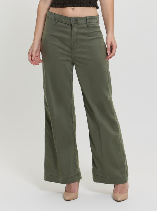 Upgrade your everyday wardrobe with the Green High Rise Dakota Plain Pants. Designed in a soft stretch Lyocell-cotton blend, these relaxed-fit trousers feature a flattering high-rise waist and a wide-leg silhouette for an effortlessly cool look. Finished with back patch pockets and a classic button closure, they're perfect for both casual and elevated styling.