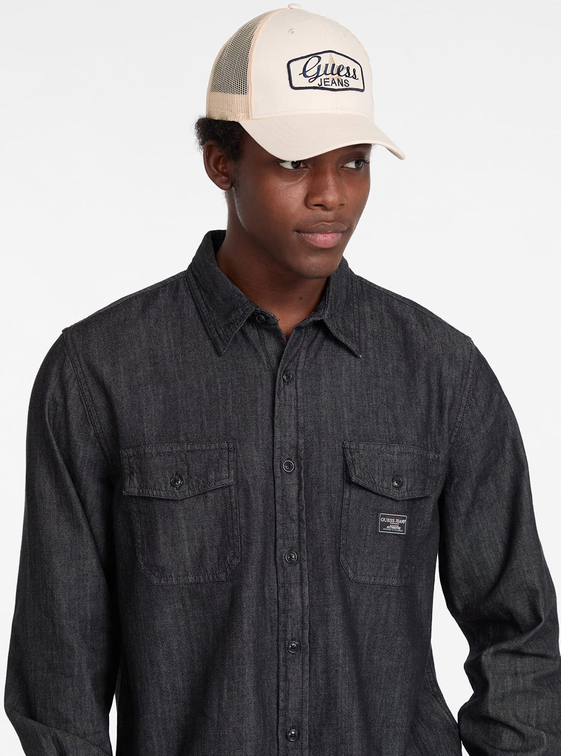 Add instant coolness to your look with the Guess Jeans Beige Trucker Cap. Made of 100% cotton, this cap features the iconic logo detail for a touch of style. Perfect for any casual outing, it will keep you comfortable and stylish all day long. (Seriously, you'll look like a million bucks!)
