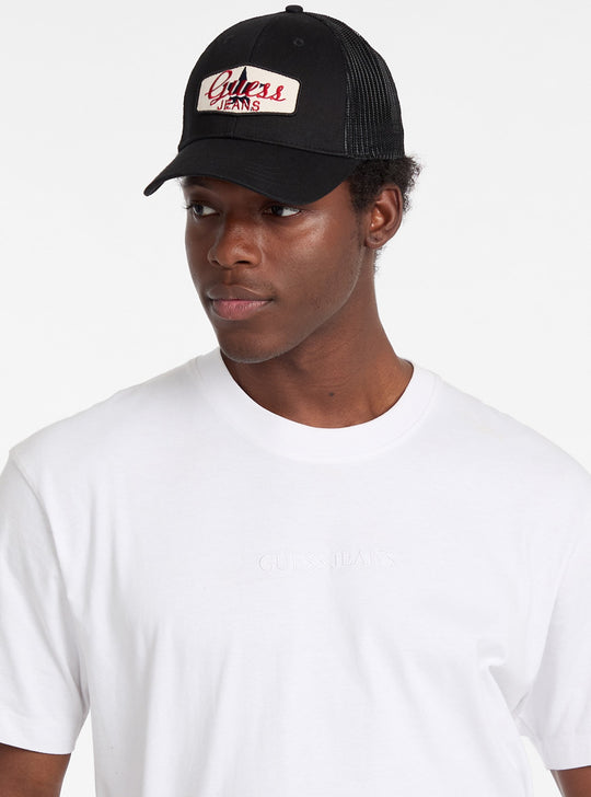 Add instant coolness to your look with the Guess Jeans Black Trucker Cap. Made of 100% cotton, this cap features the iconic logo detail for a touch of style. Perfect for any casual outing, it will keep you comfortable and stylish all day long. (Seriously, you'll look like a million bucks!)