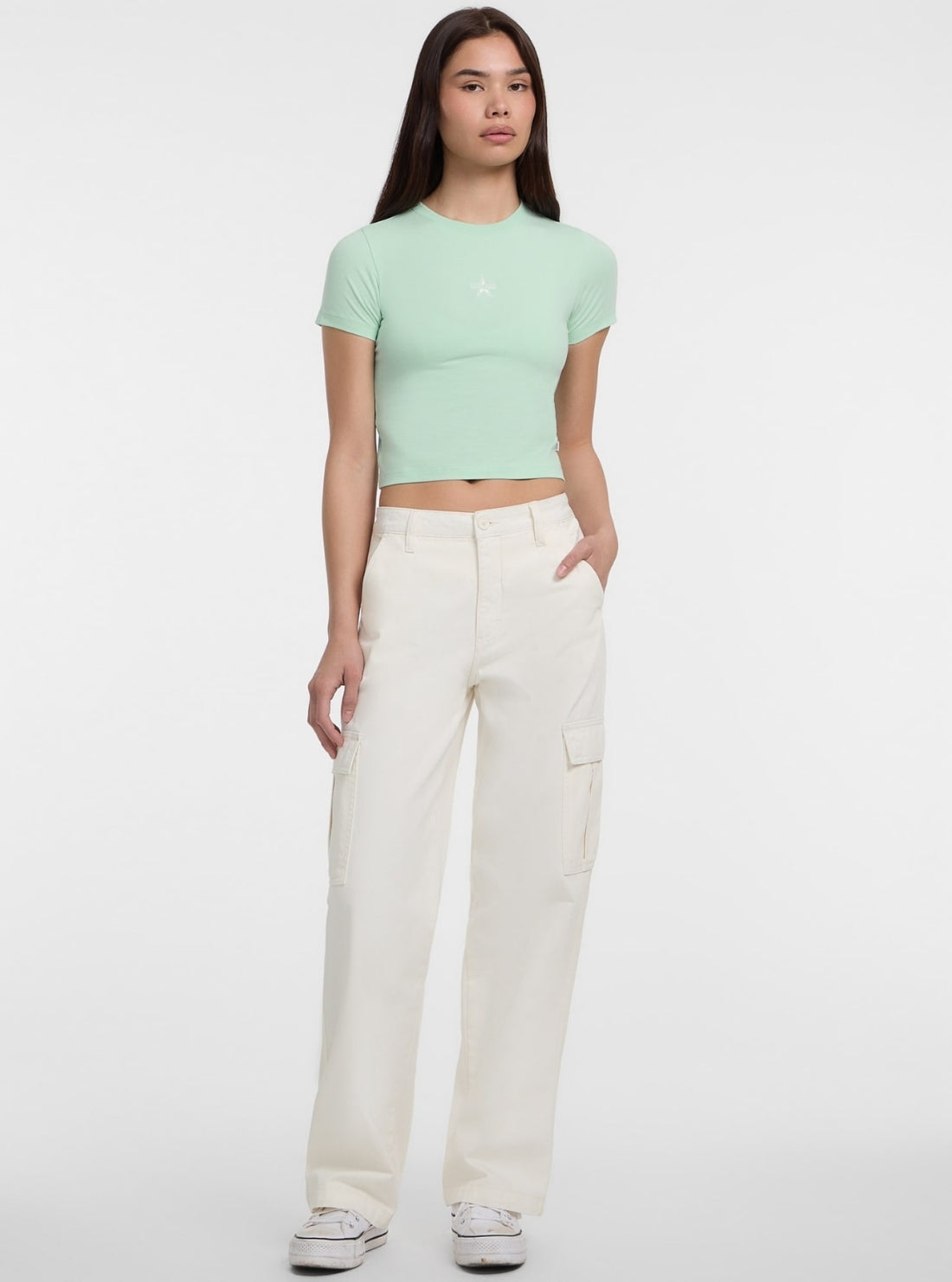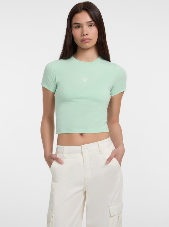Guess Jeans  Green Crew Star Cropped T-Shirt W5GI38J1314 Front View Guess Jeans Green Crew Star Cropped T-Shirt W5GI38J1314 Full View Guess Jeans Green Crew Star Cropped T-Shirt W5GI38J1314 Detail View Guess Jeans Green Crew Star Cropped T-Shirt W5GI38J1314 Back View