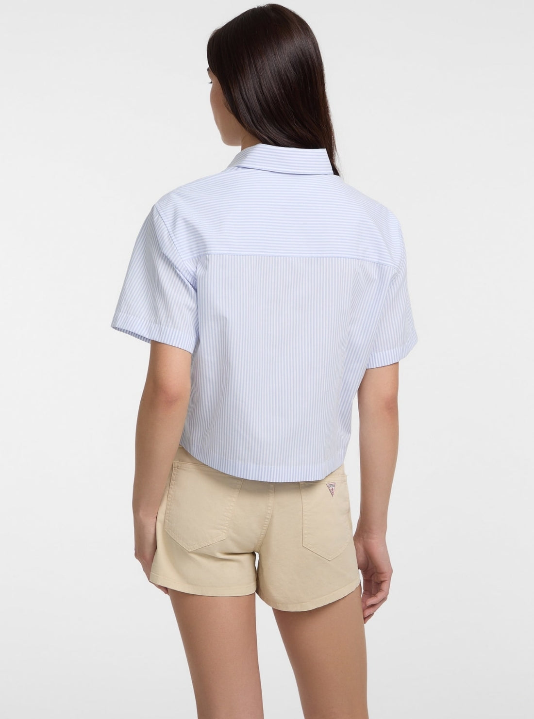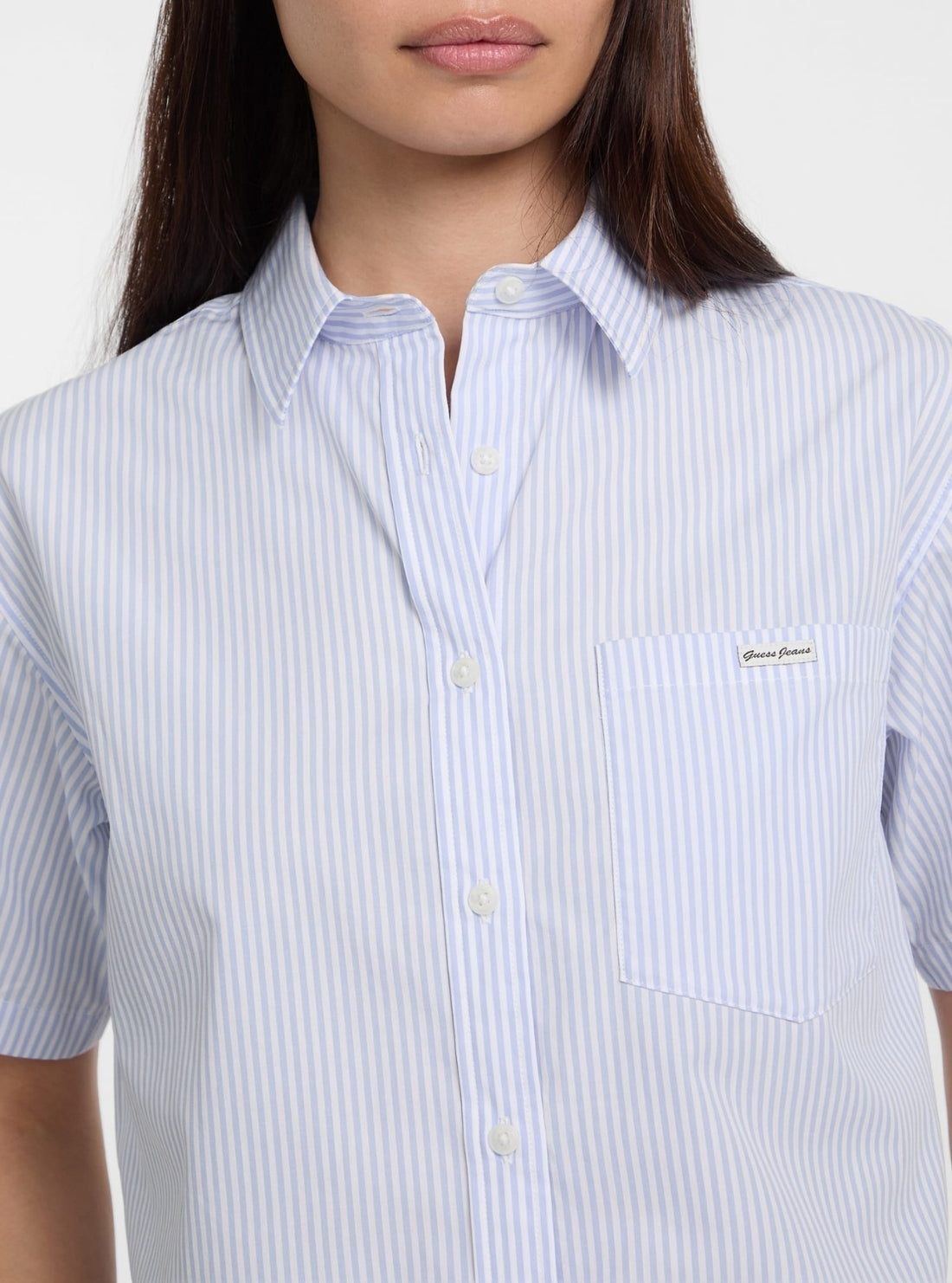 Guess Jeans Eco Blue Striped Boxy Poplin Shirt W5GH98WH7Q1 Front View Guess Jeans Eco Blue Striped Boxy Poplin Shirt W5GH98WH7Q1 Full View Guess Jeans Eco Blue Striped Boxy Poplin Shirt W5GH98WH7Q1 Detail View Guess Jeans Eco Blue Striped Boxy Poplin Shirt W5GH98WH7Q1 Back VIew