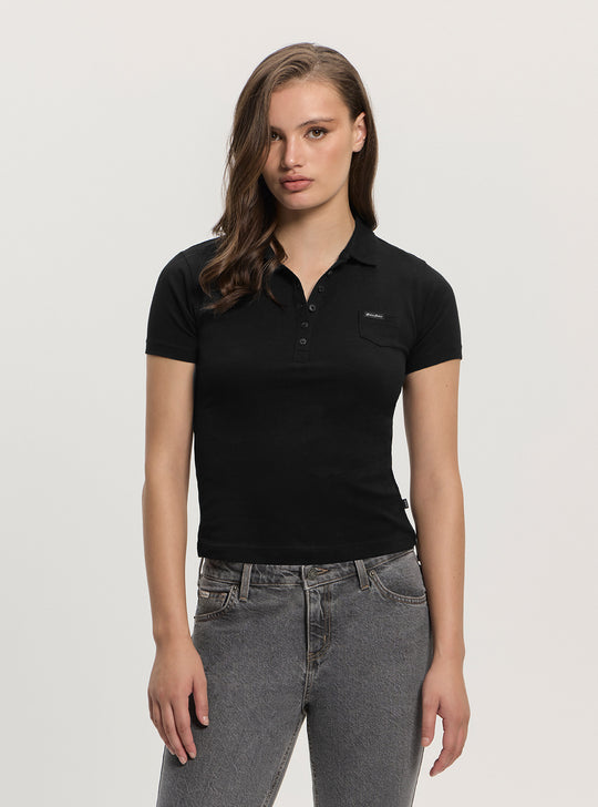 Elevate your casual wardrobe with Guess Jeans Slim Polo T-Shirt. Designed with a flattering fitted silhouette, it features a classic polo collar, short sleeves, and a button-down placket. A subtle front chest pocket and tonal Guess logo detailing add a refined touch. Perfect for pairing with jeans, skirts, or layering under jackets for a polished off-duty look.